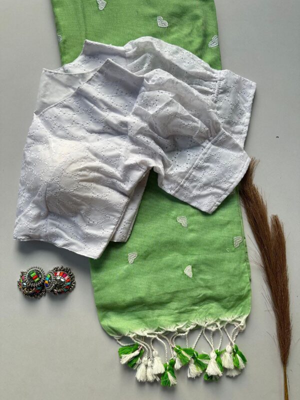 White Blouse Green Saree