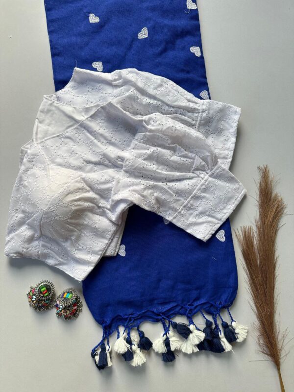 White Blouse Ink Blue Saree