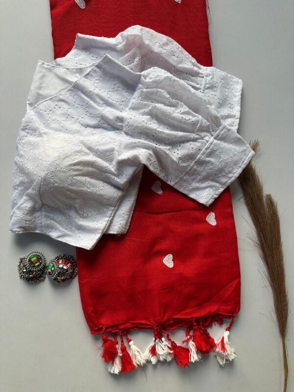 Red Blouse White Saree