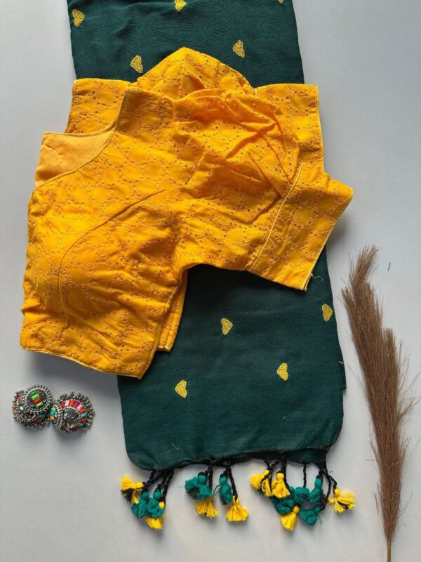 Yellow Blouse Green Saree