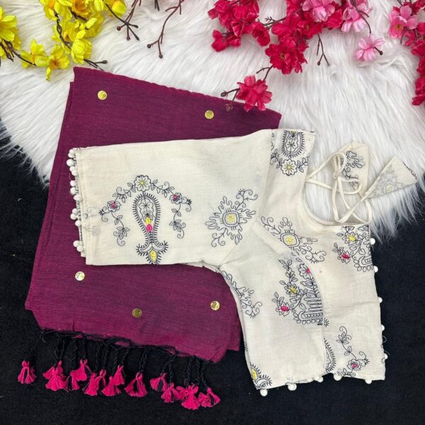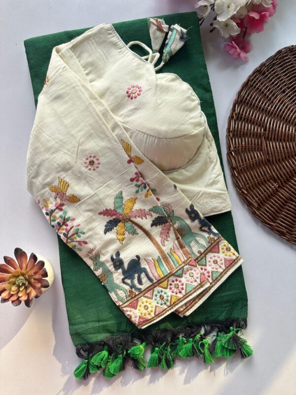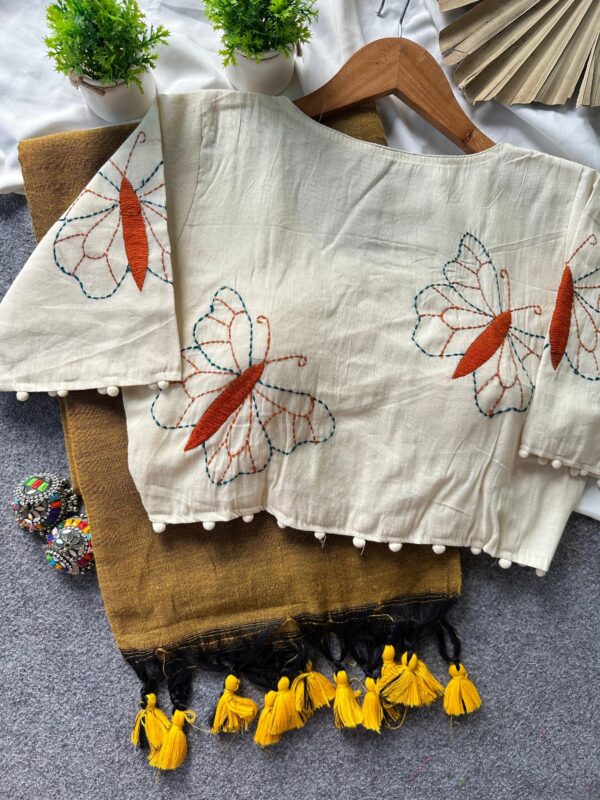 Stitched blouse with Khadi Cotton Sarees along with Ginni