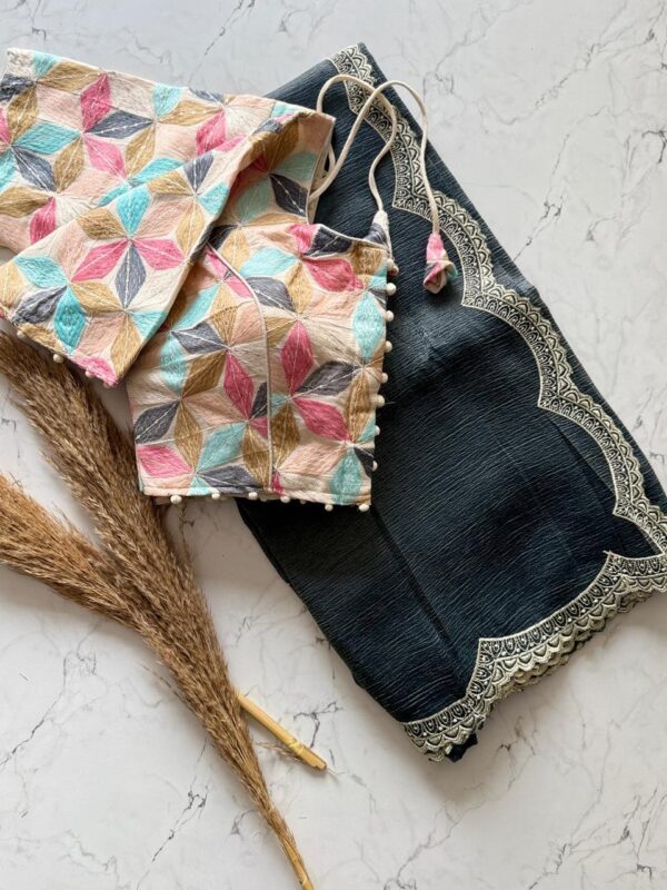 Stretchable Blouse with khadi Saree