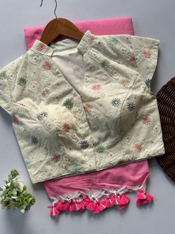 Pink Blouse White Saree