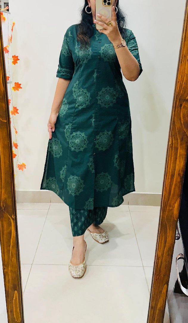 Launching Designer Coord set in *Aline kurti with side slit pattern paired with Ankle length pant* in *Fine Cotton* giving perfect outfit and deliberate choice about your look…..
