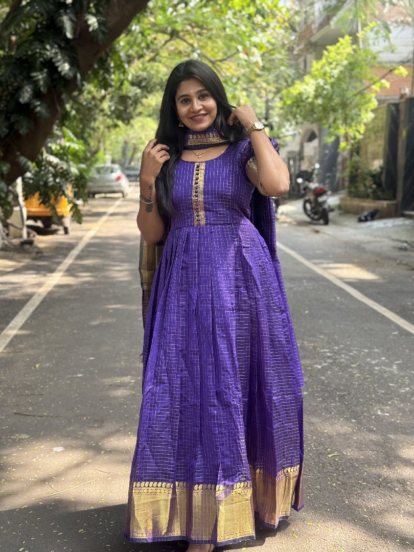 Banarasi soft silk anarkali with dupatta