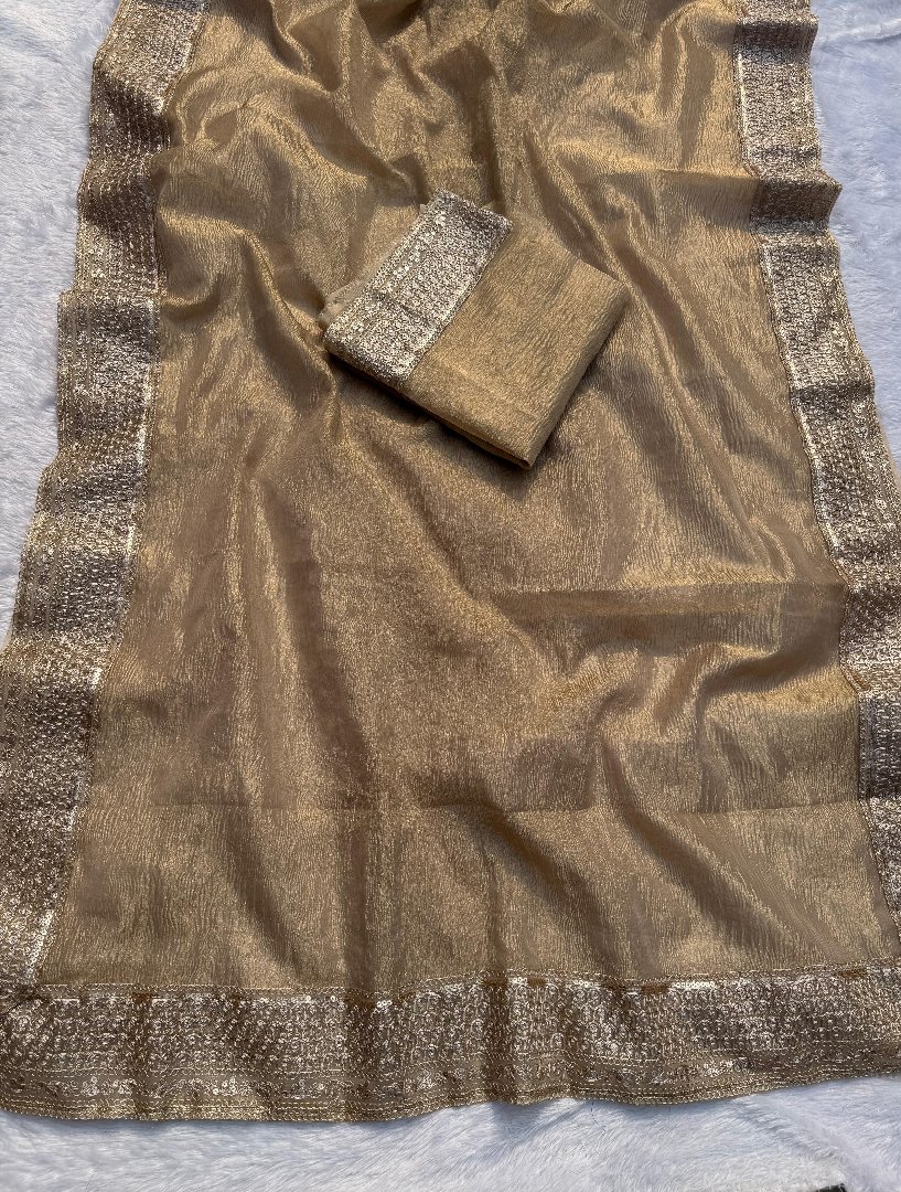 Banarasi plain tissue crushed saree with trending lace