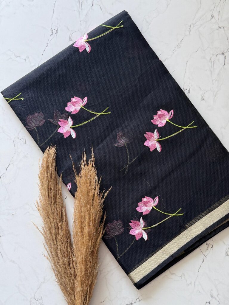 Adorned with graceful stone lace work, this saree defines timeless elegance.