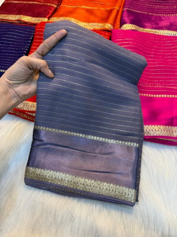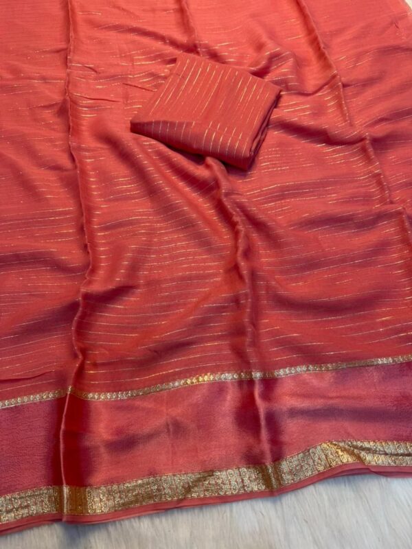 Viscose Georgette Sarees With Horizontal Zari Stripes