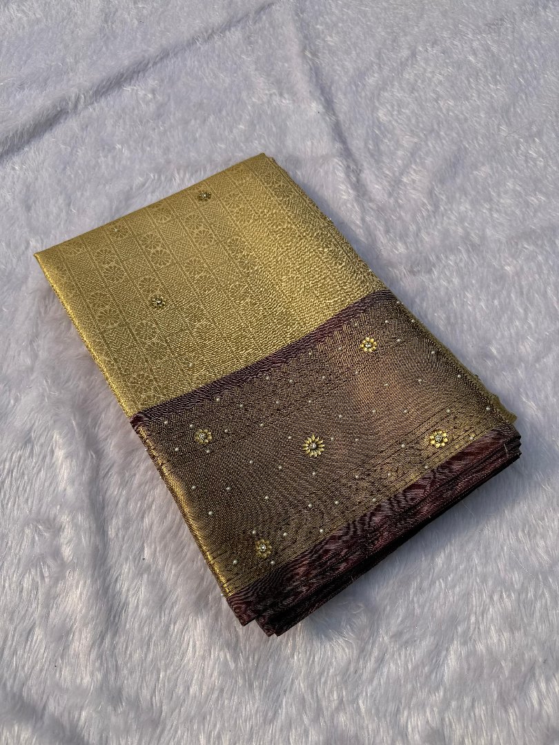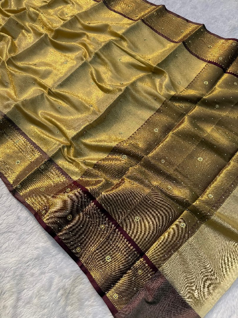 Celebrate inspired Banarasi tissue saree with stone work