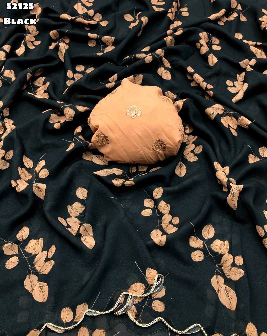 Fabric – Soft & smooth weightless chiffon floral digital print with contrast embroidery work scalloped border