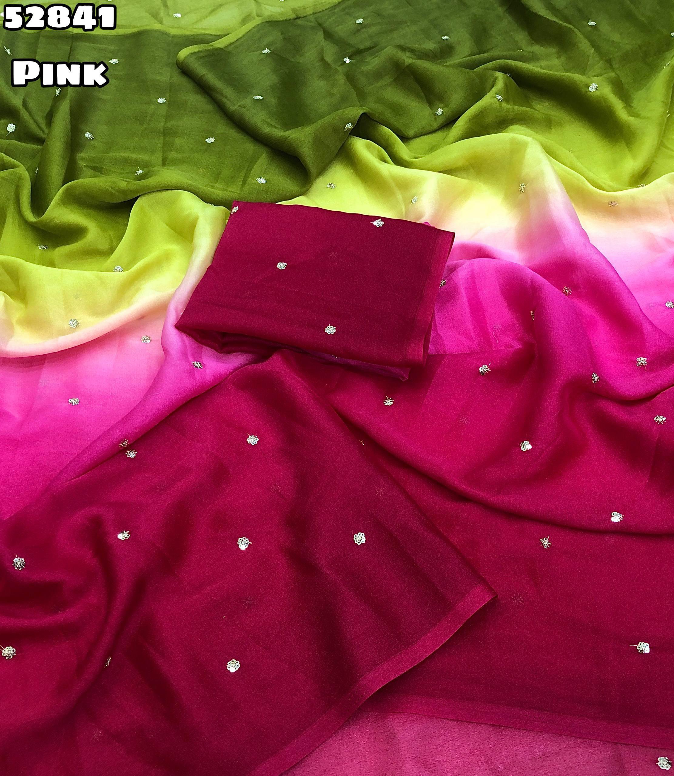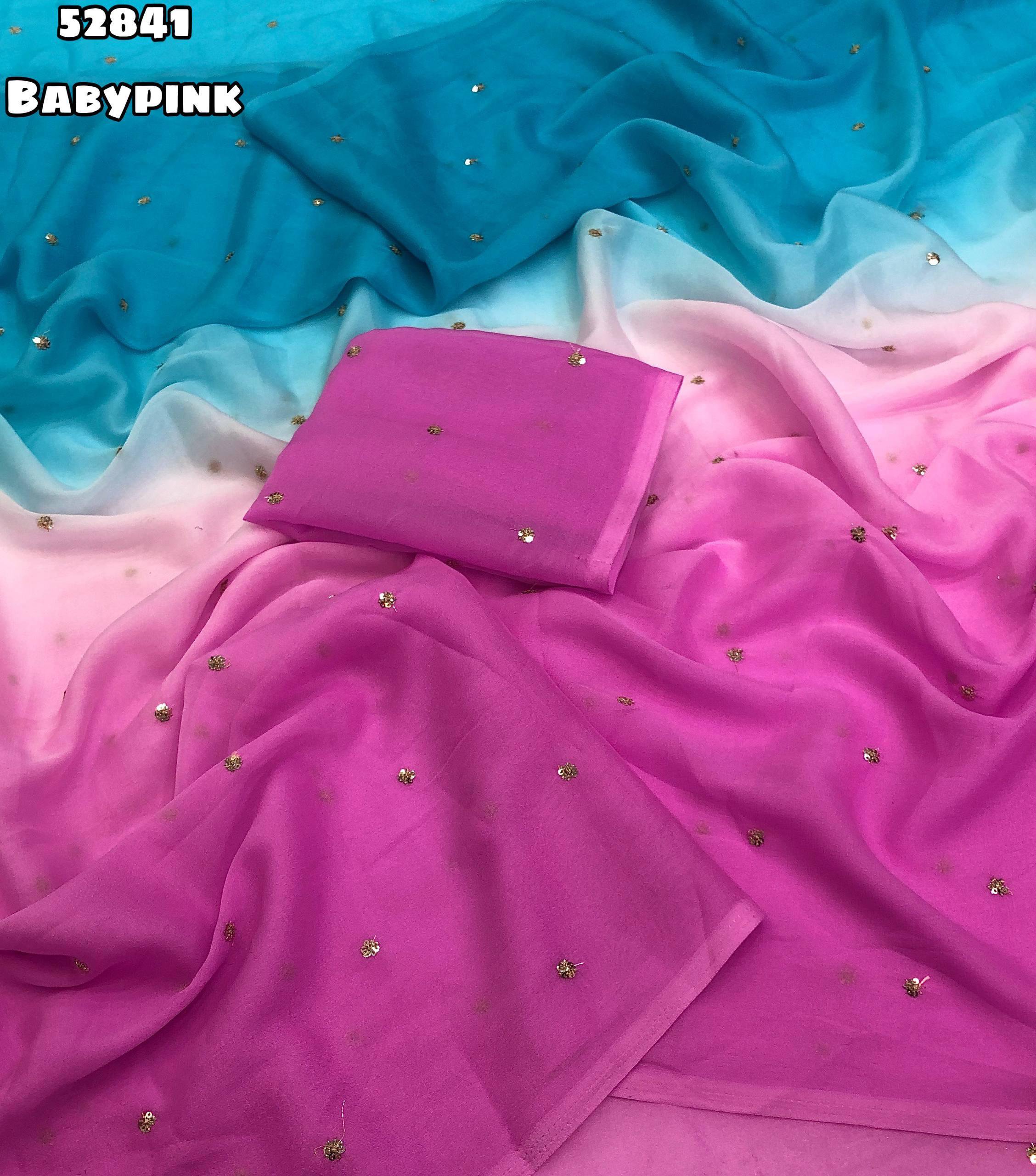 Launching New Georgette dual colour padding saree with embroidery & sequence butti work