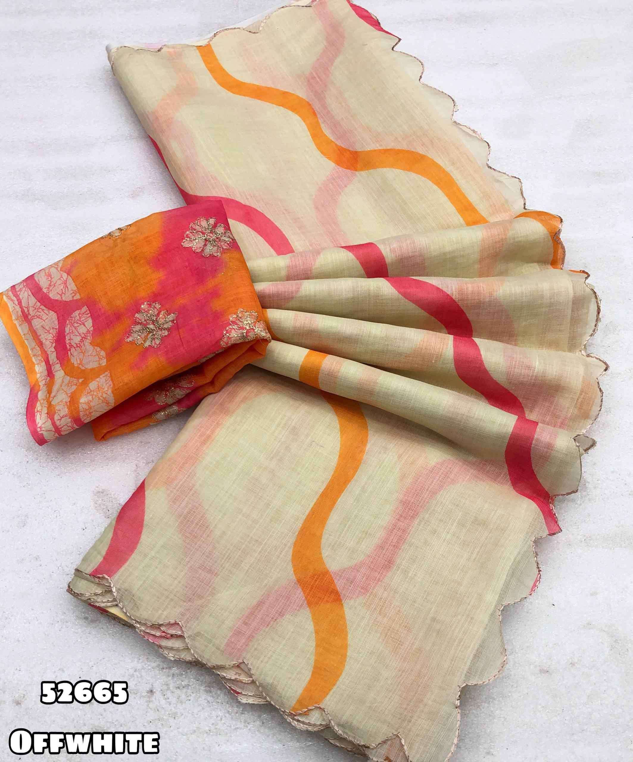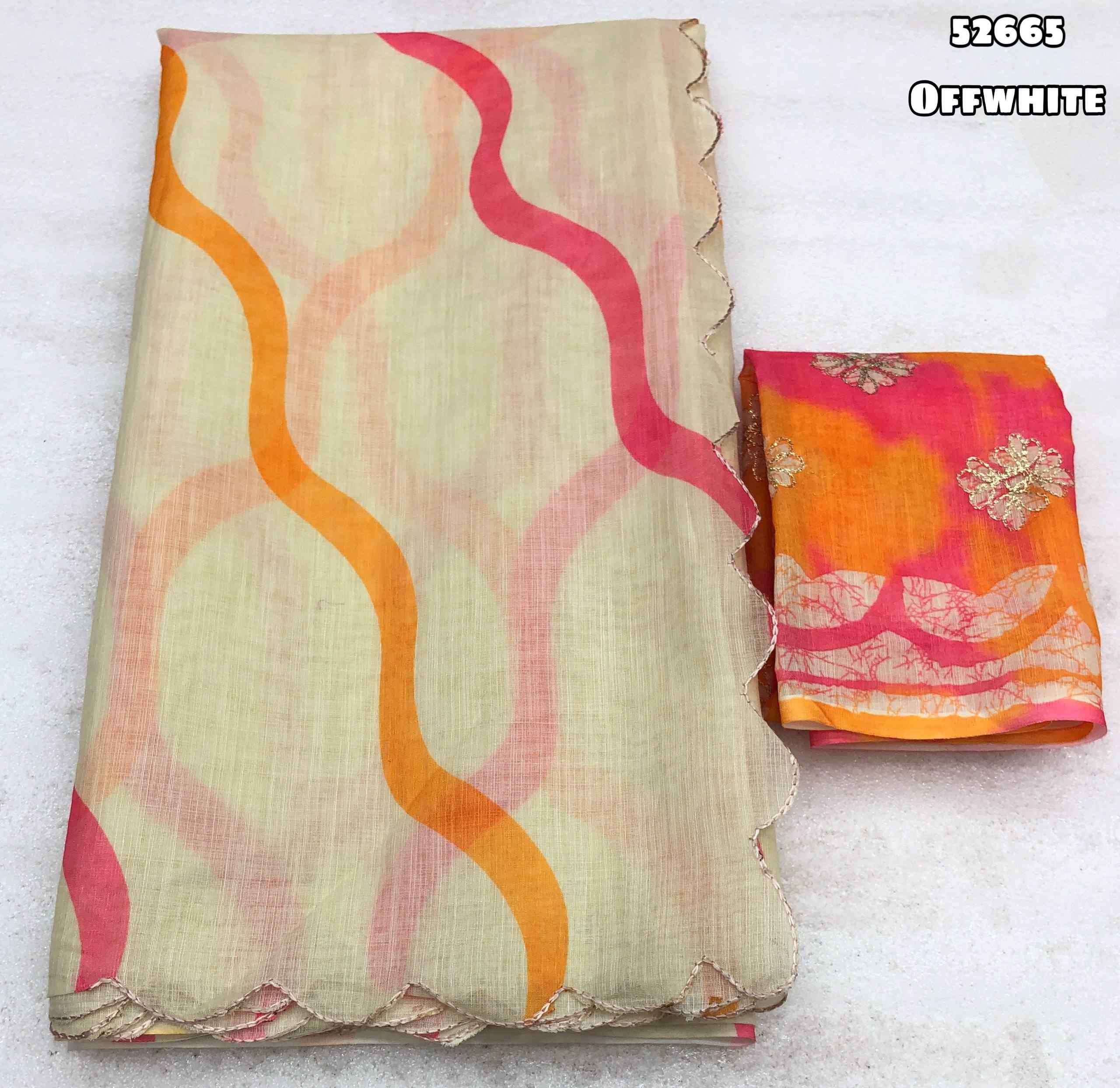 Launching new Soft lenin brush print style digital print comes with embroidery cutwork border