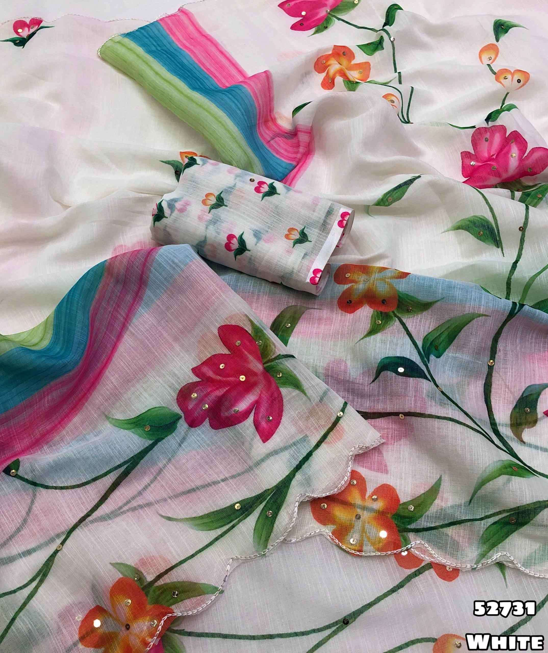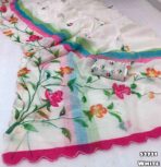 Launching new Soft linen brush print style printed saree with sequence work & embroidery work scalloped cutwork border