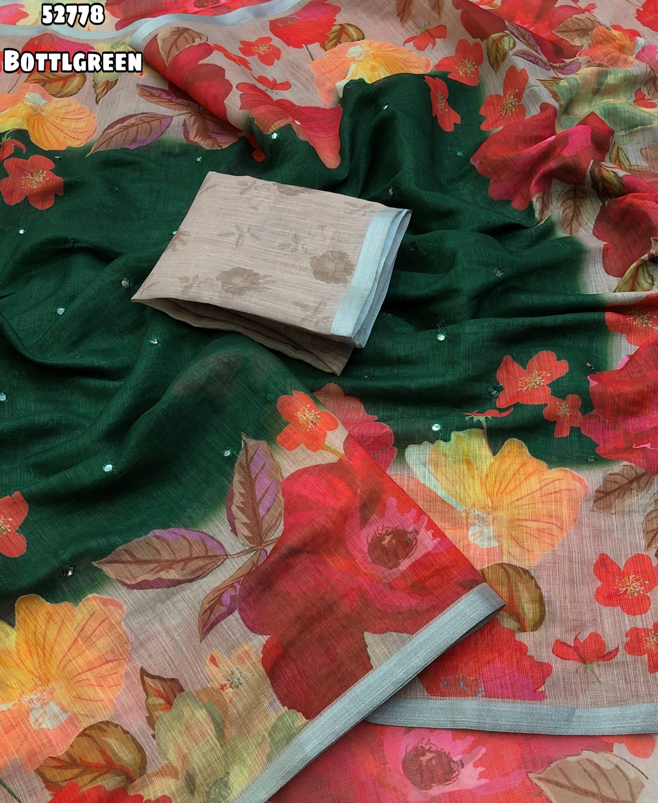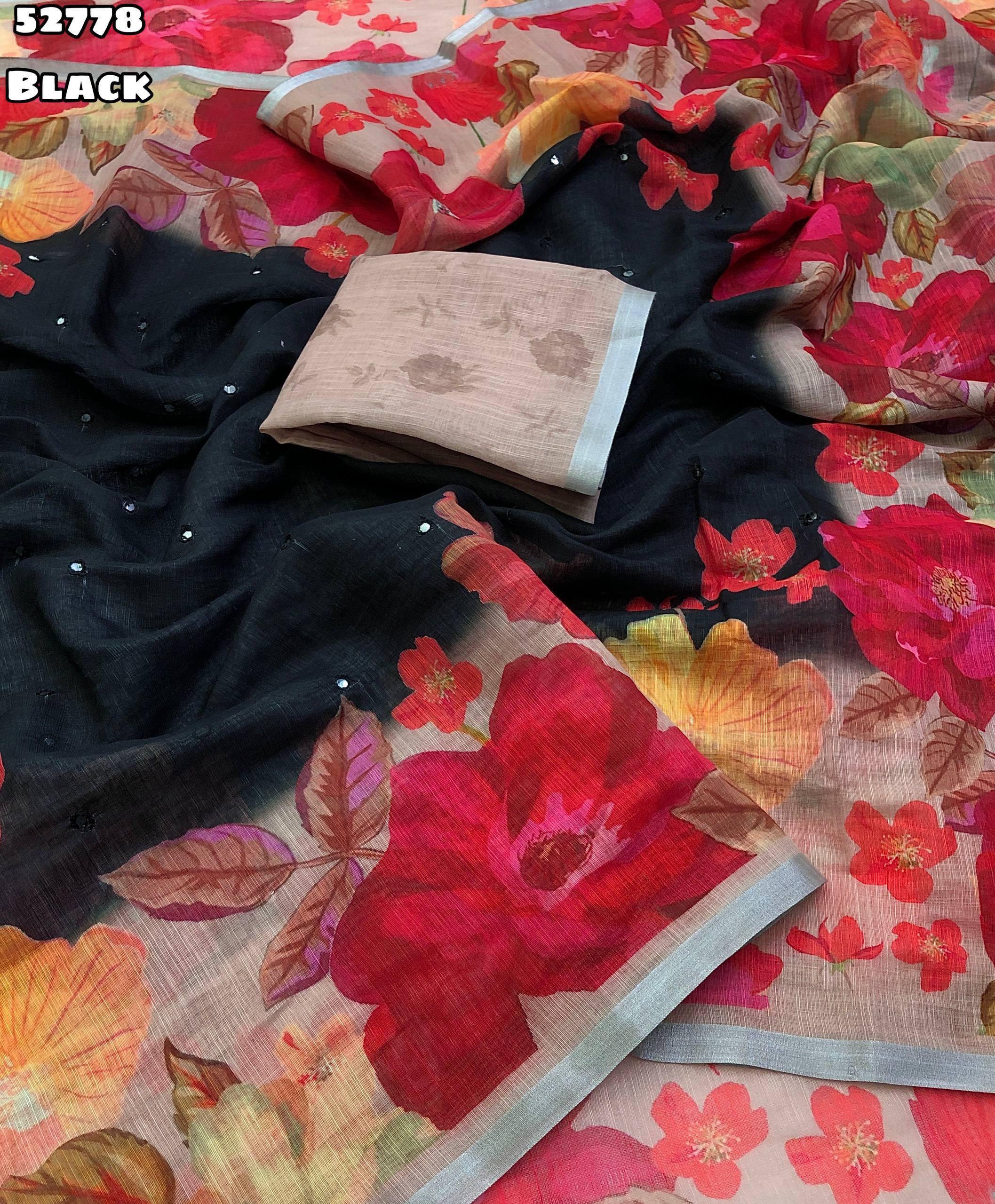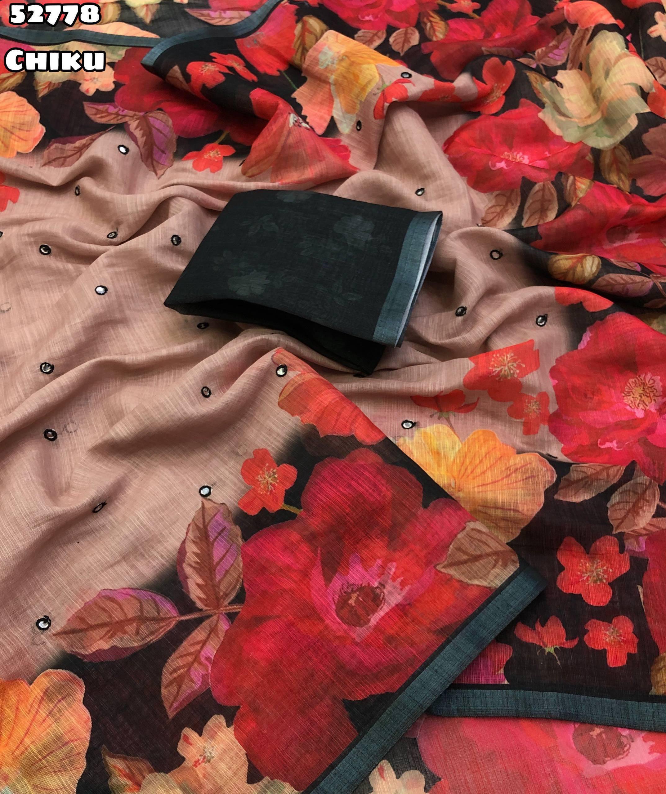 Launching new Soft linen floral digital print with embroidery & foil mirror work with zari border
