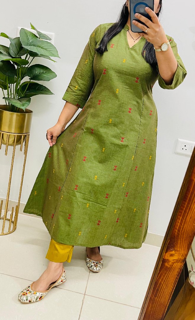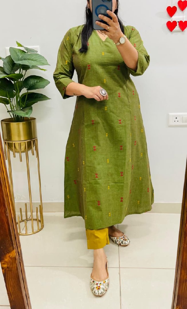 New Designer Premium South Cotton Handloom Fabric Flared Top in Aline Pattern with Cotton Flex Pant in Ikkat Print… 💥💥