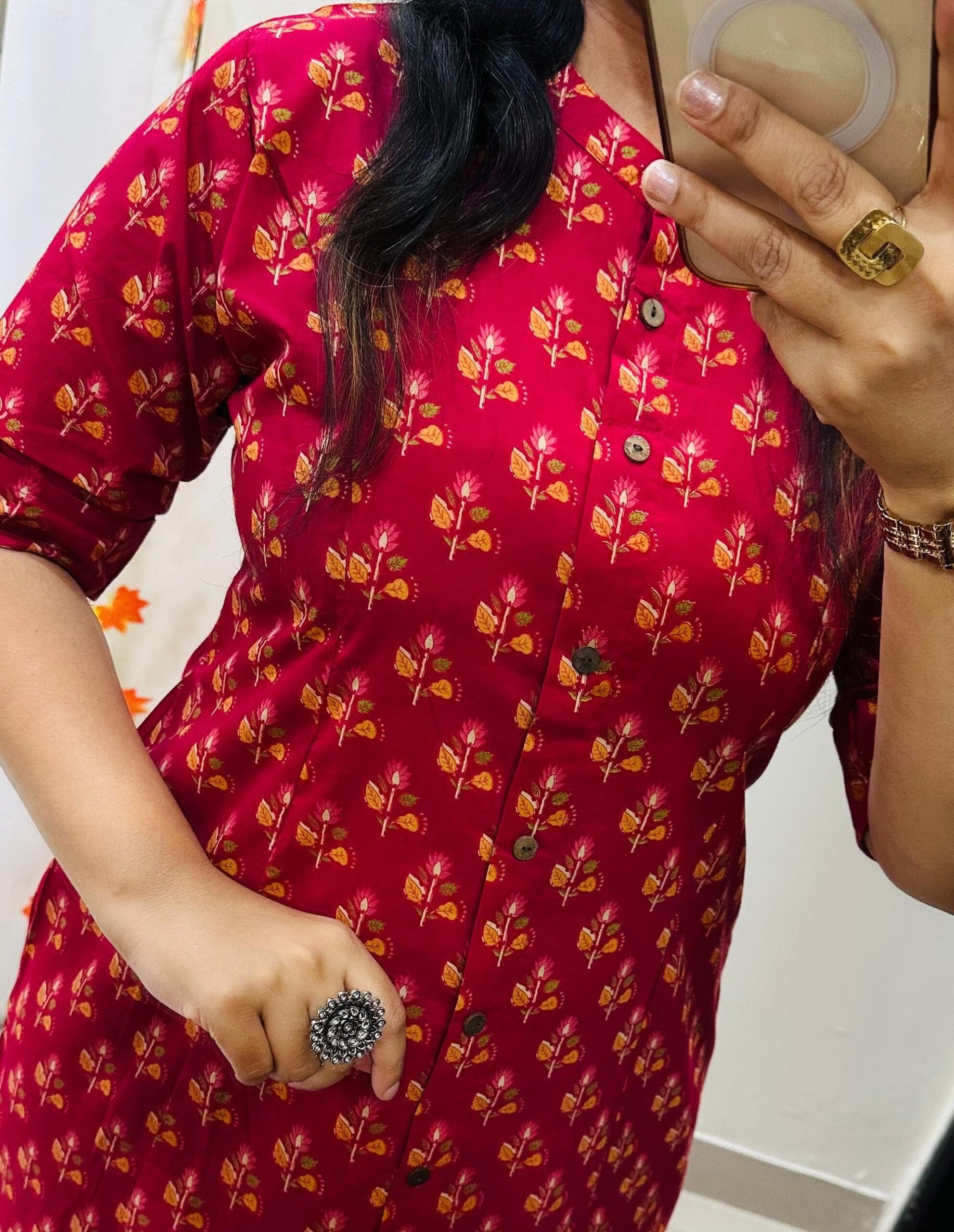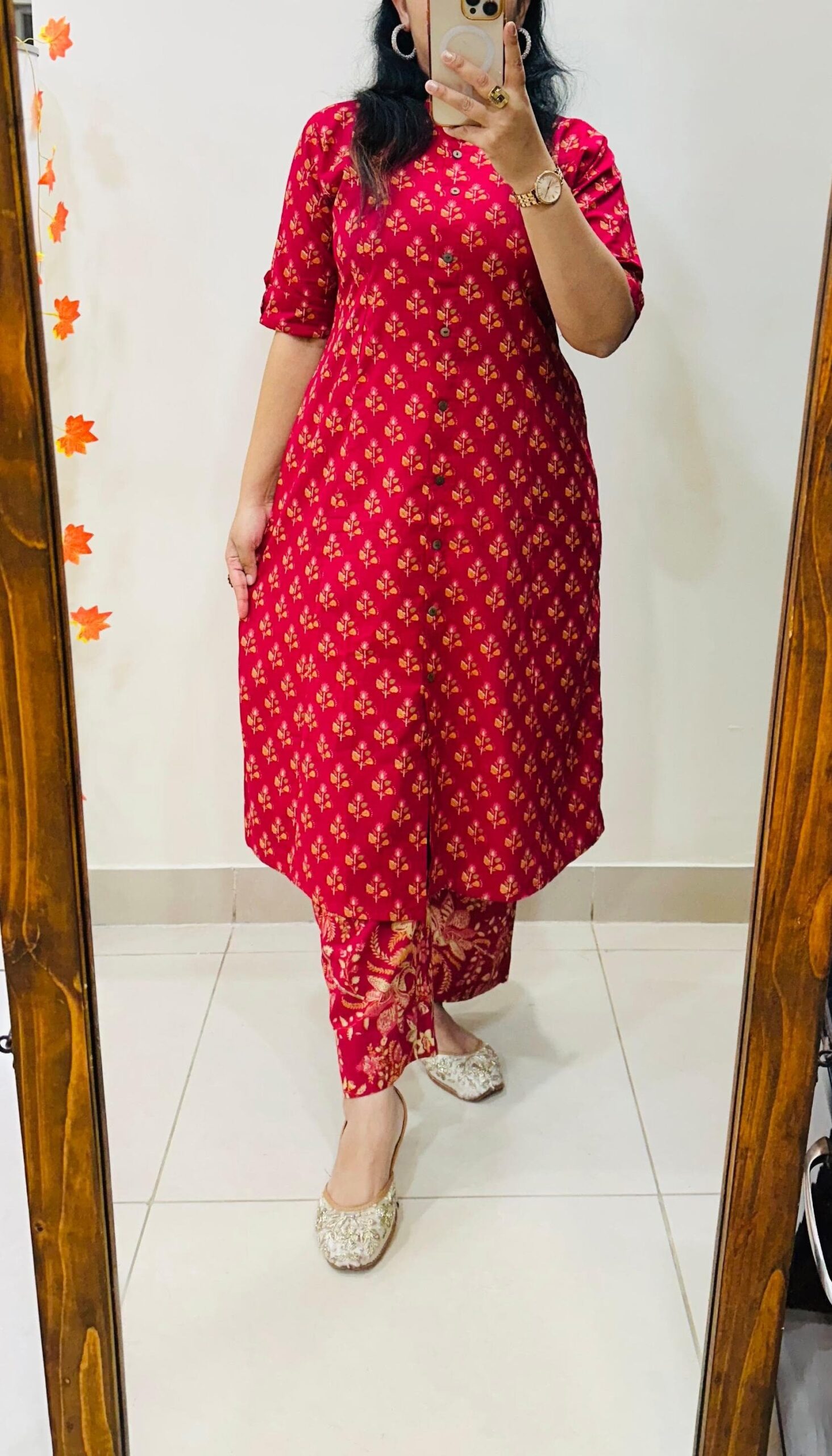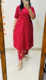 Launching Designer Coord set in *Aline kurti with side slit pattern paired with Ankle length pant* in *Fine Cotton* giving perfect outfit and deliberate choice about your look…..