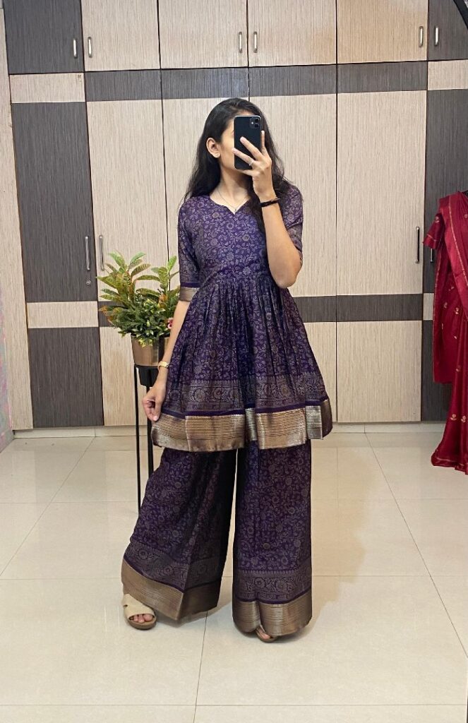 Launching Designer Coord set in *Aline kurti with side slit pattern paired with Ankle length pant* in *Fine Cotton* giving perfect outfit and deliberate choice about your look…..