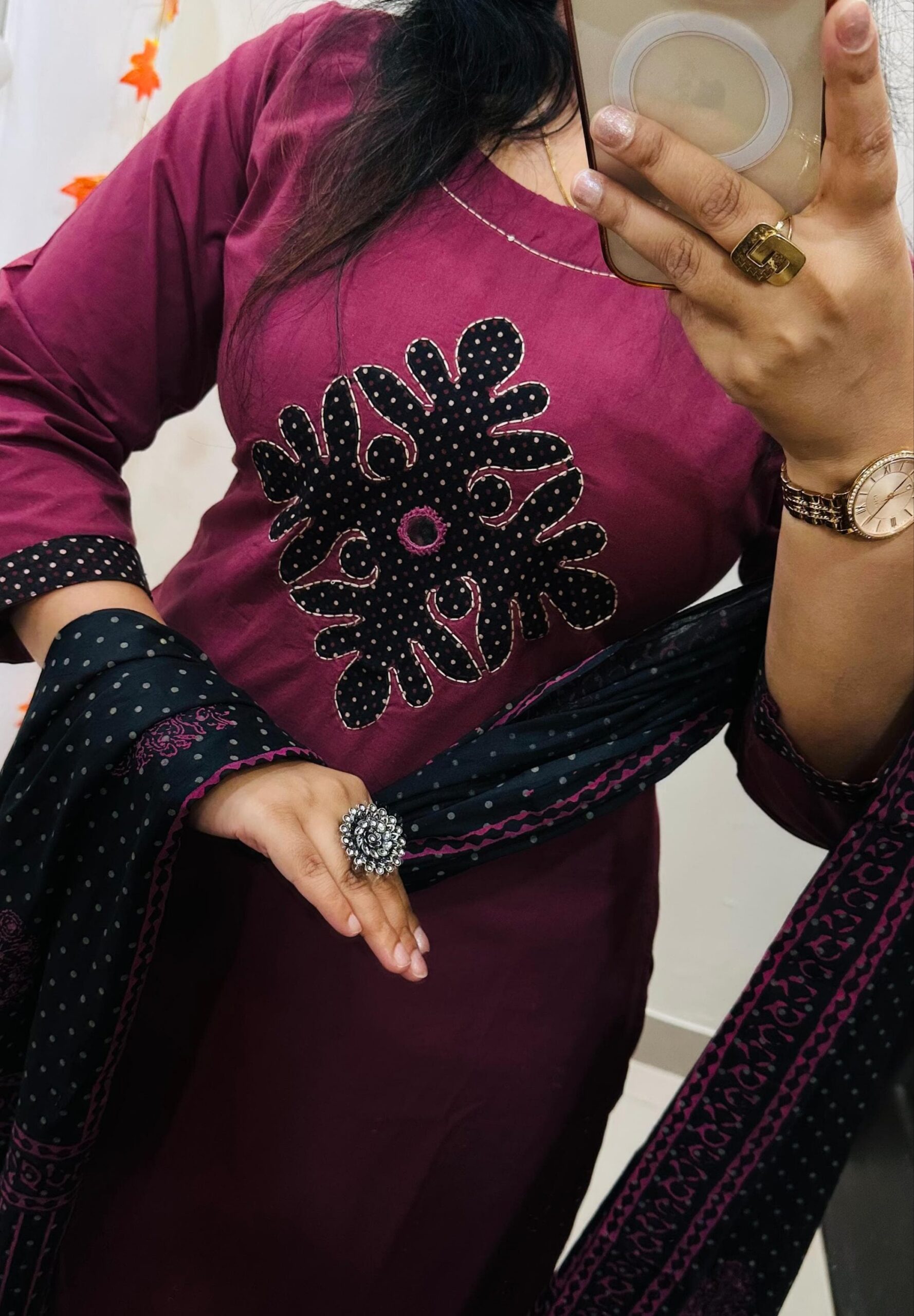 Stylish Ethnic Kurti Pant Dupatta Set in Rich Dhabu cotton fabric with *Beautiful applique and original work on yoke* paired with fine cotton dupatta… 🎉🎉