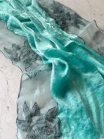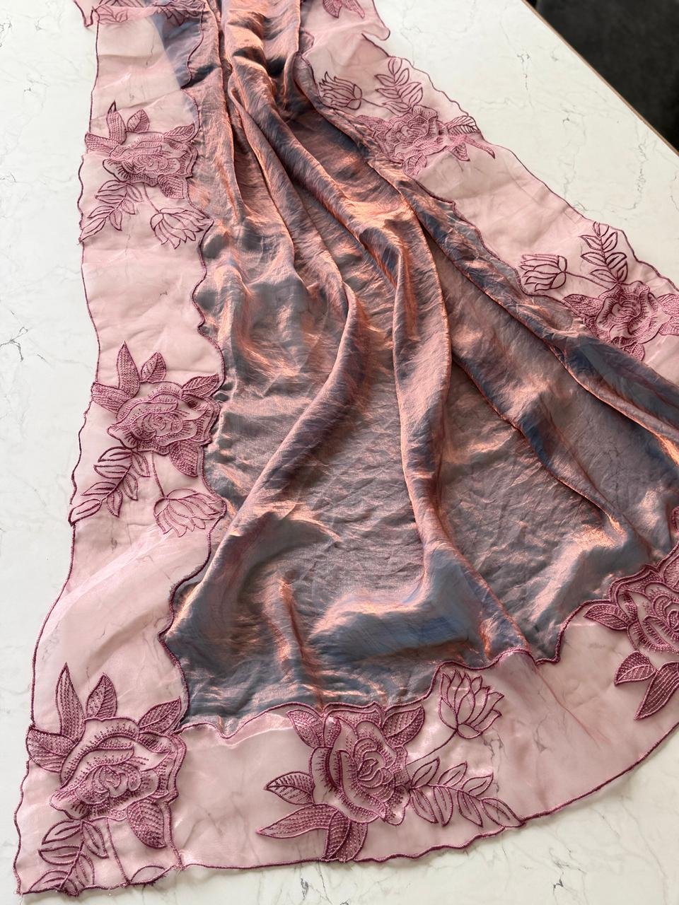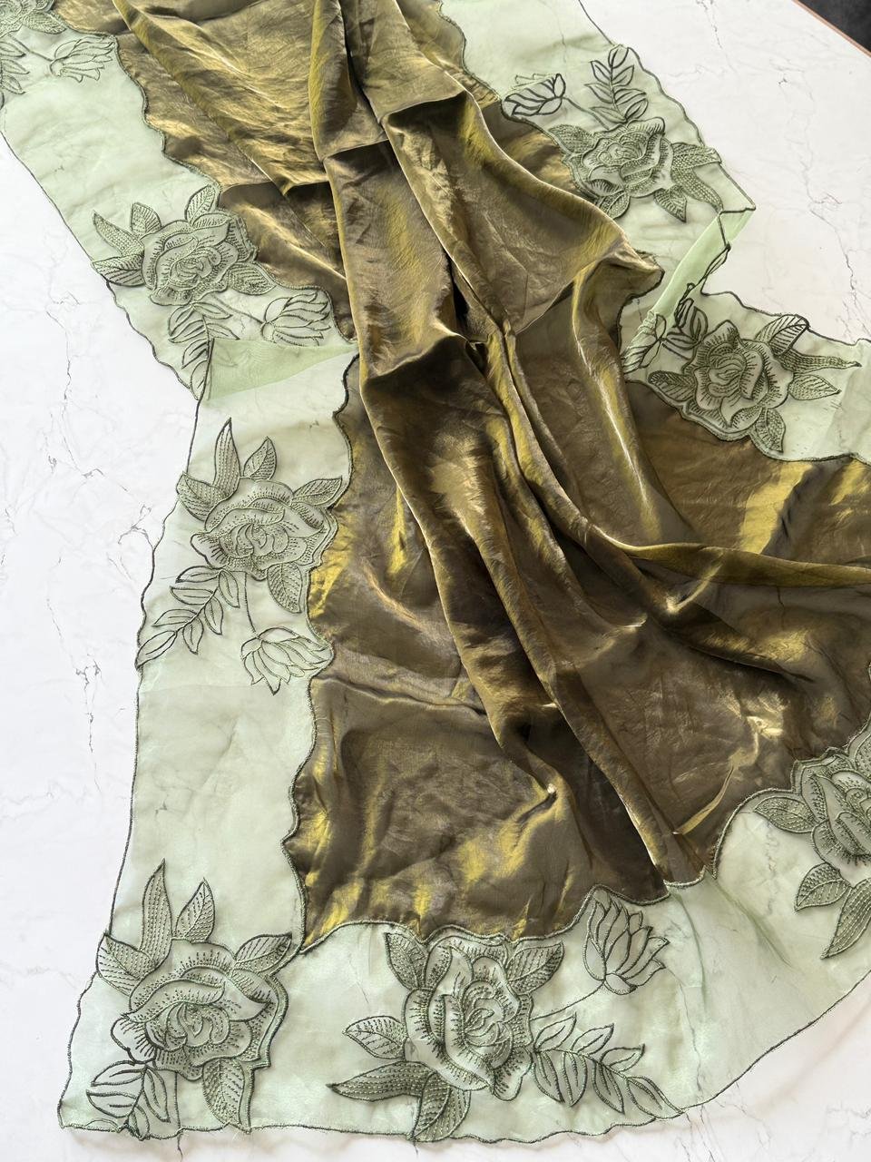 Premium Pure Fendi Silk Saree With Applique Thread Work Lace Border