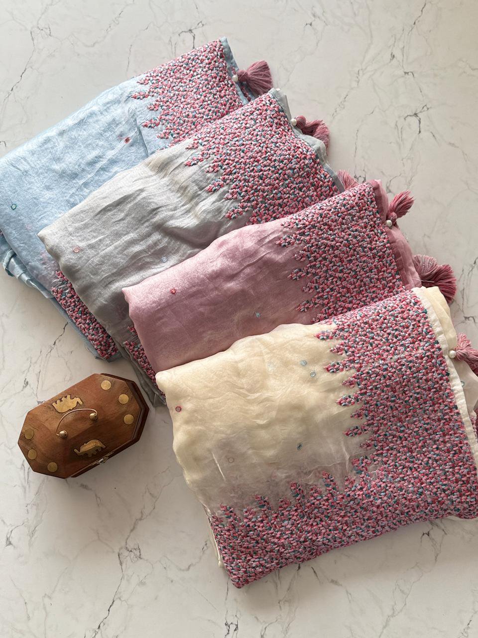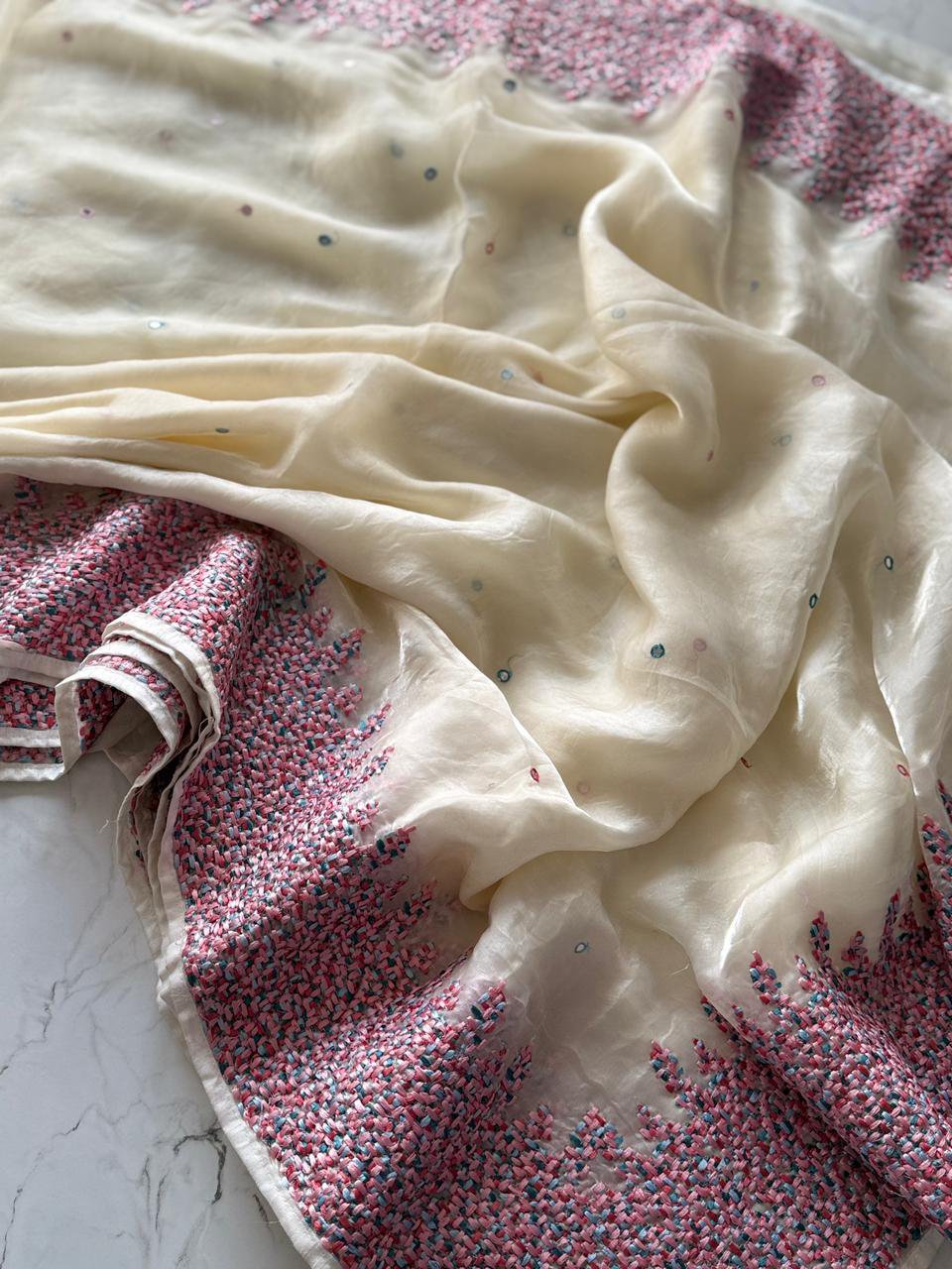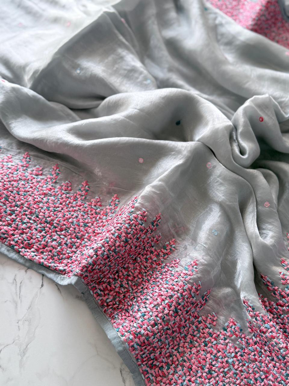 Primium Pure Fendi Space Silk With Multy Colors Knot work With Heavy Tussles