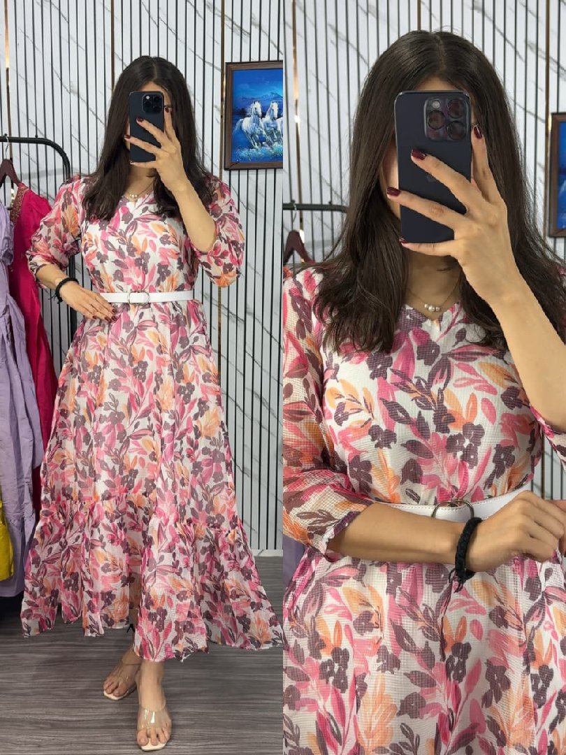 Saranya Space Silk Gown With Duppata