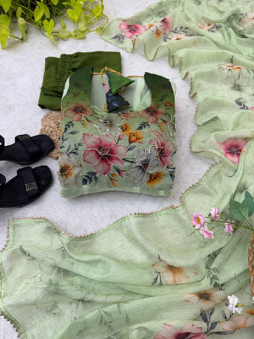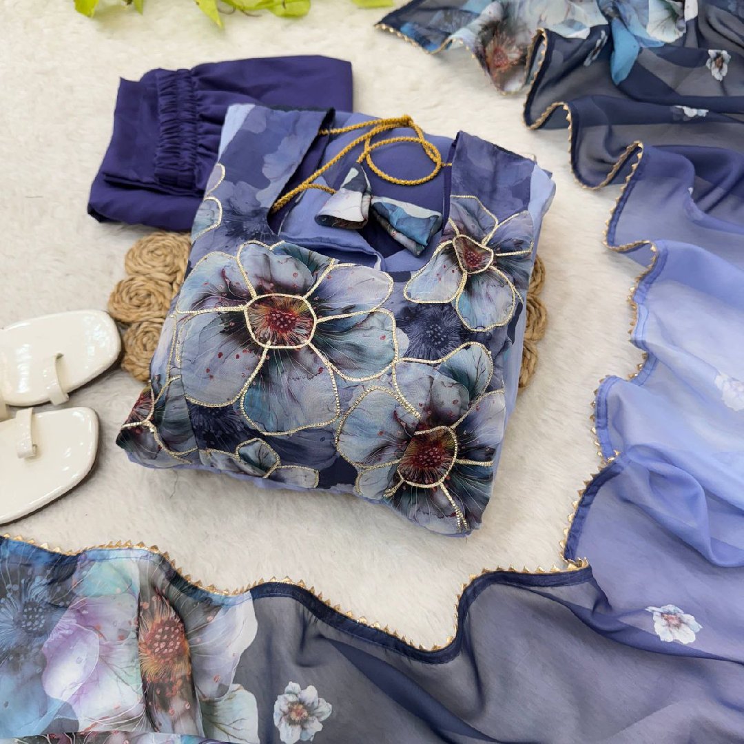 – Dupatta: Taby silk with digital print & sequence work
