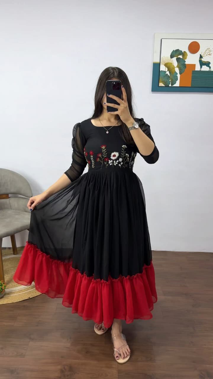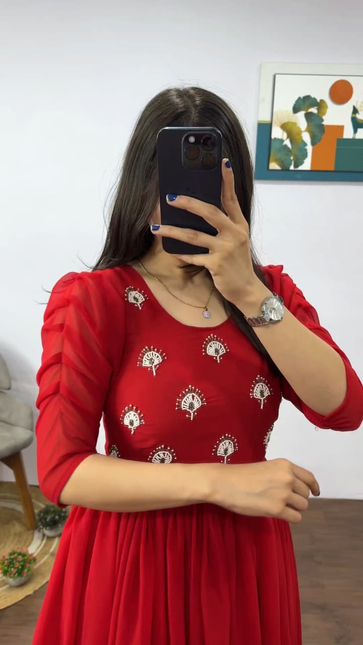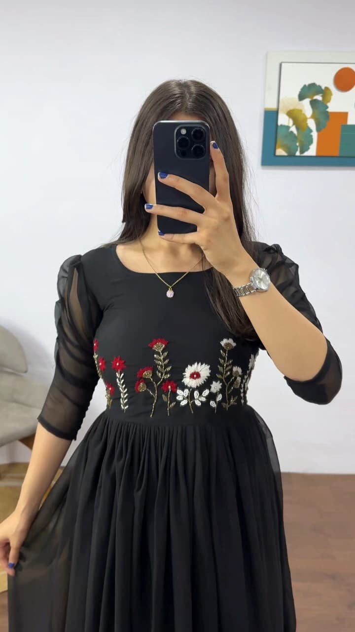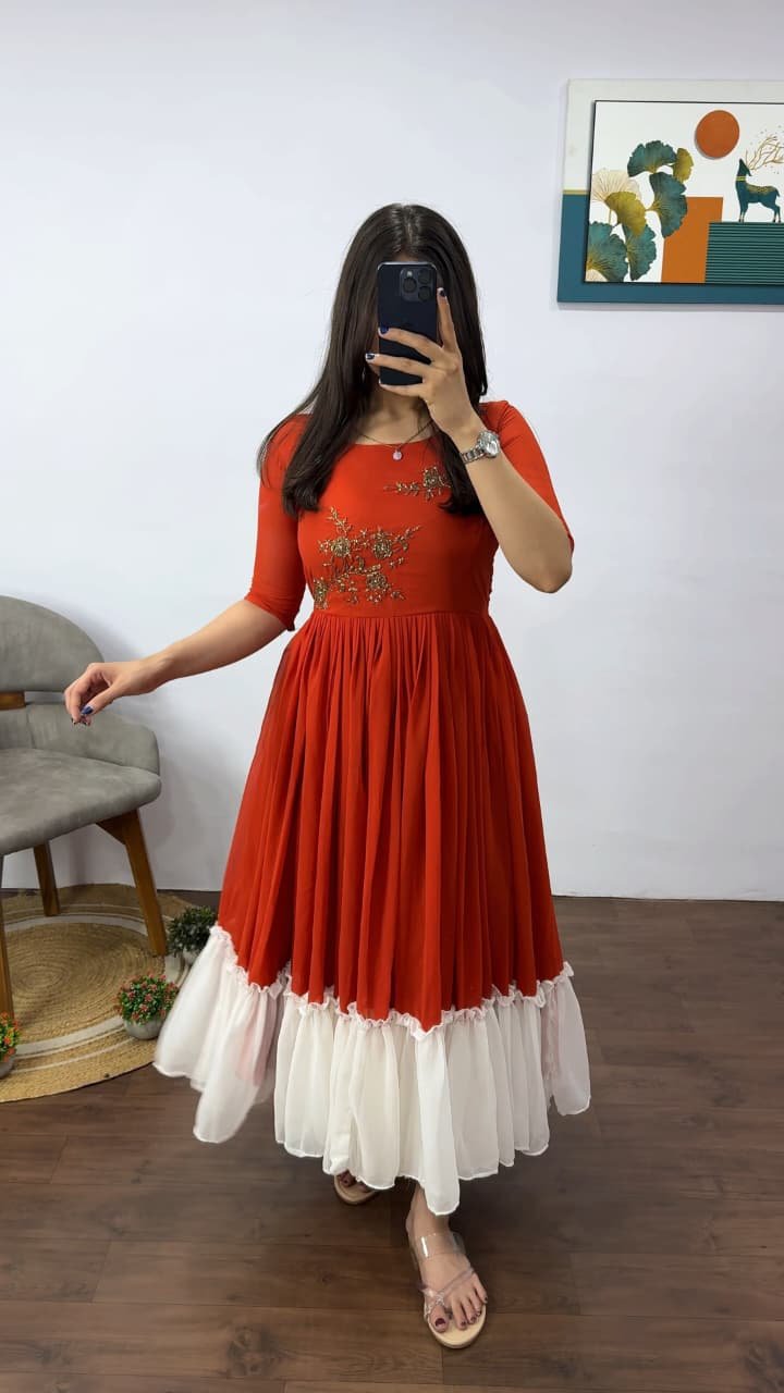 Launching Super Hit Collection, Designer Premium Faux Georgette with Designer Hand work Midi Dress. A Beautiful Blend Of elegance and Charm For This Party’s and festival.* ⚜️