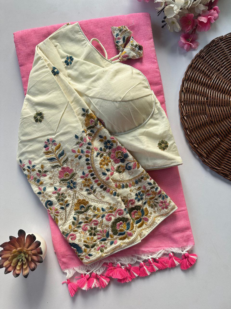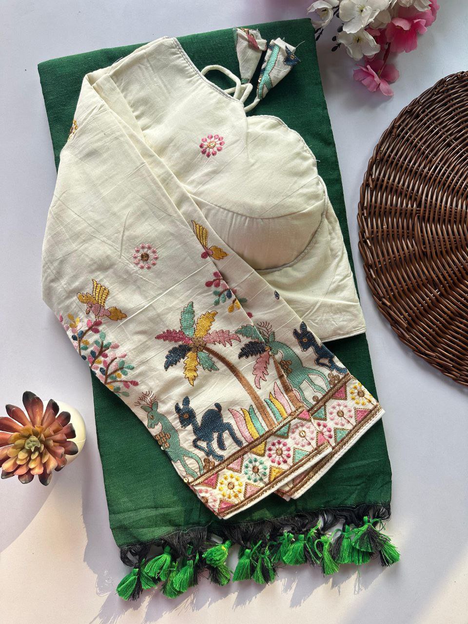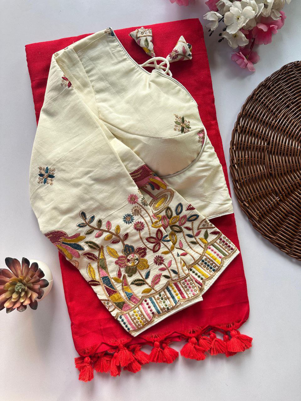 Stretchable Blouse with khadi Saree