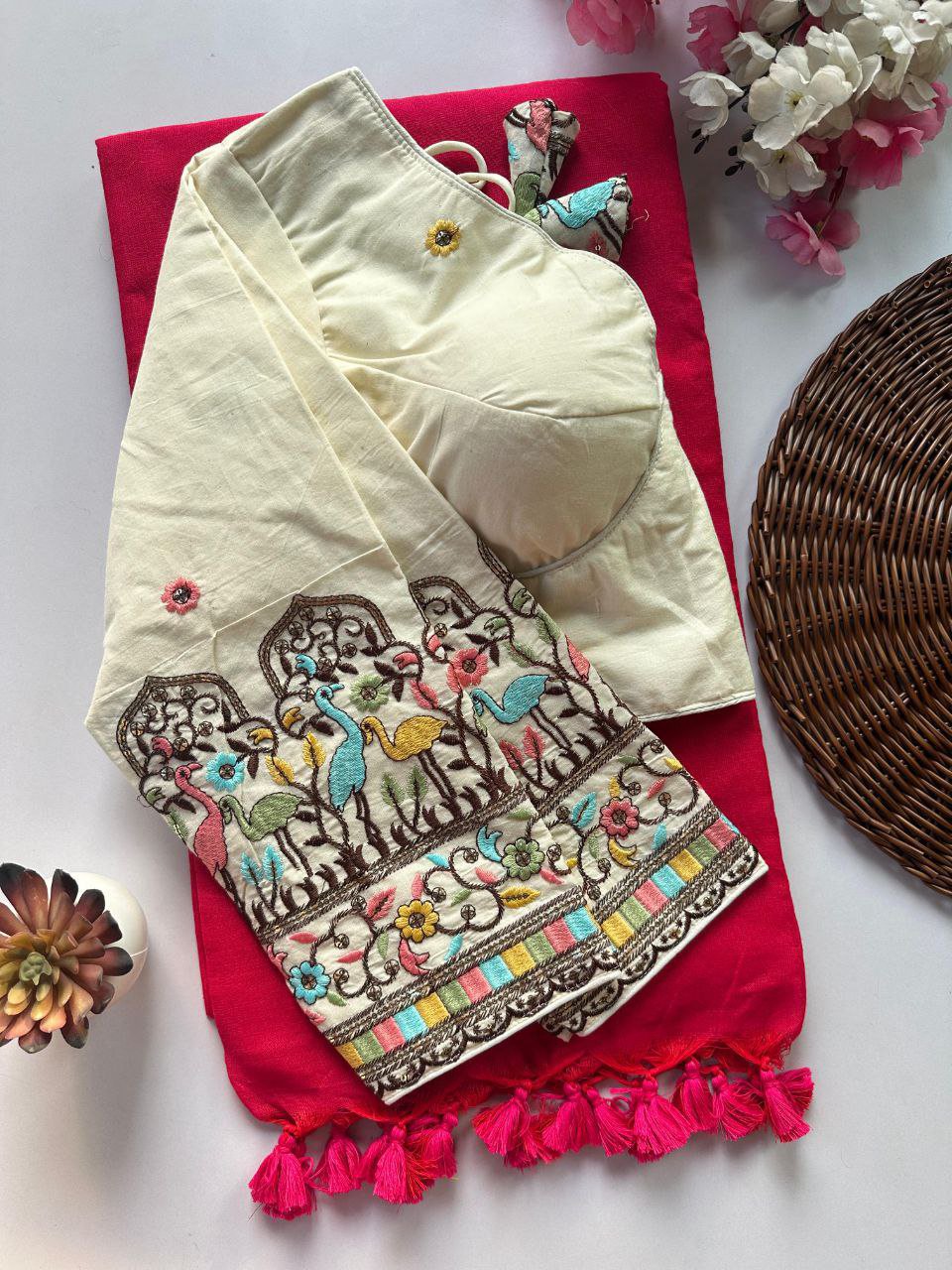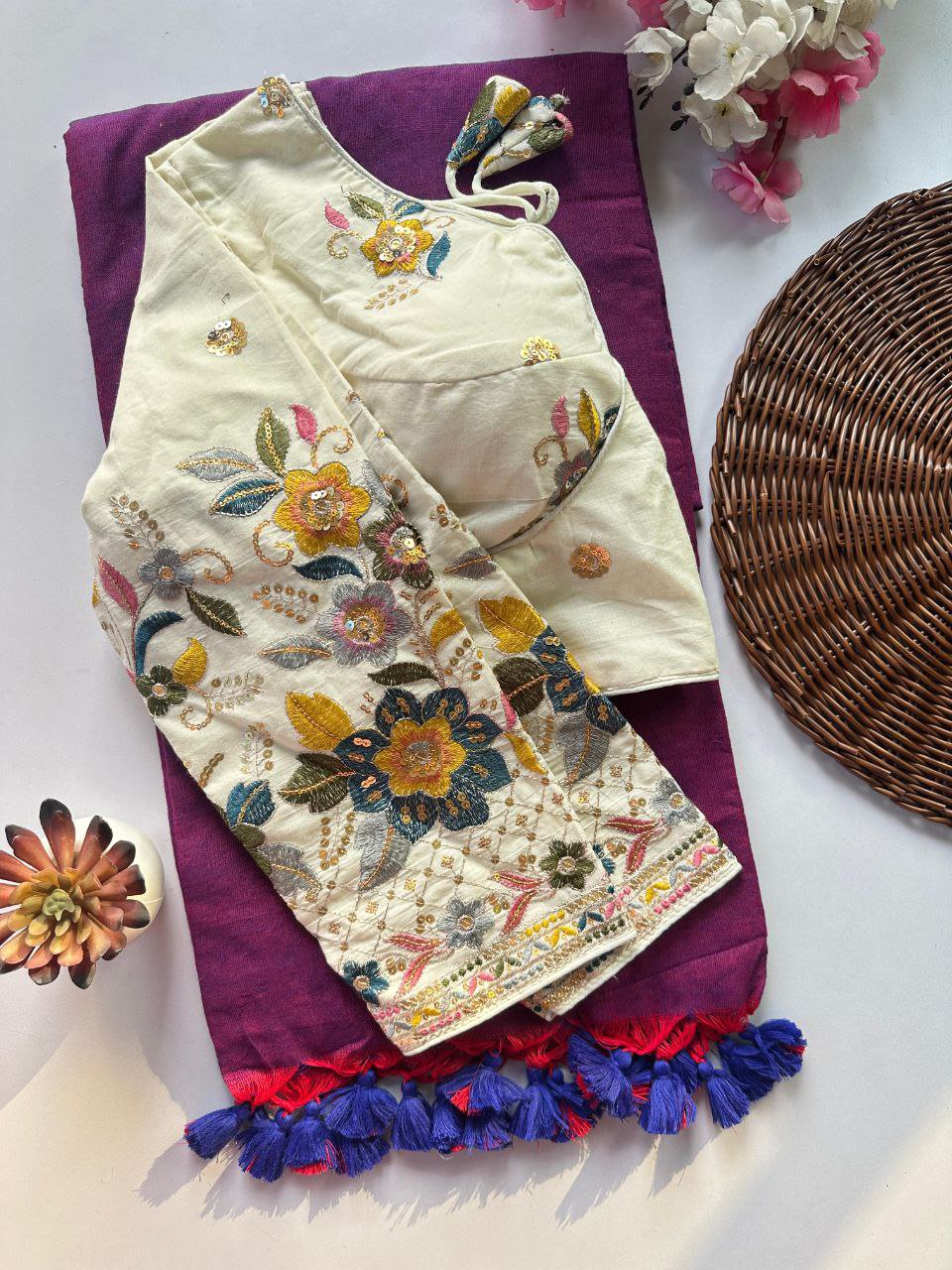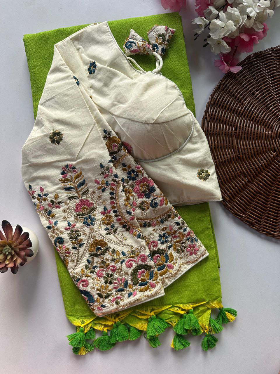 Stretchable Blouse with khadi Saree