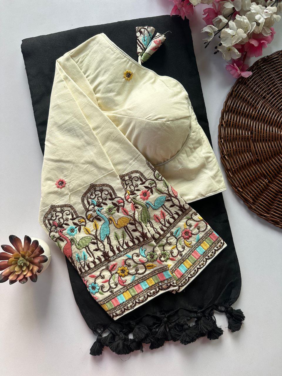 Aari Blouse with Space Silk Designer Sarees