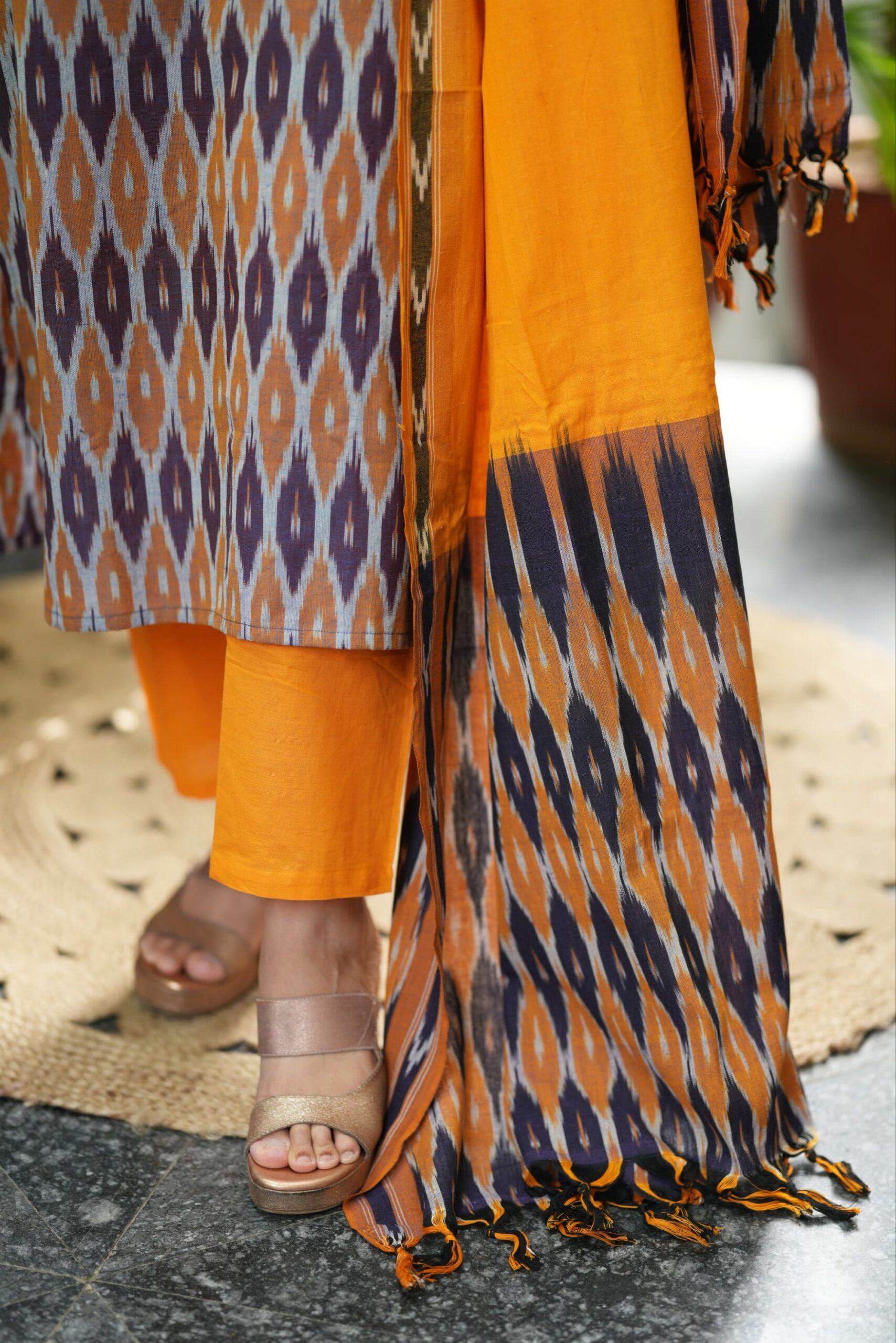 Paired with handloom cotton pant and handloom south cotton pochampally ikkath duppata perfect for casual and occasional out.