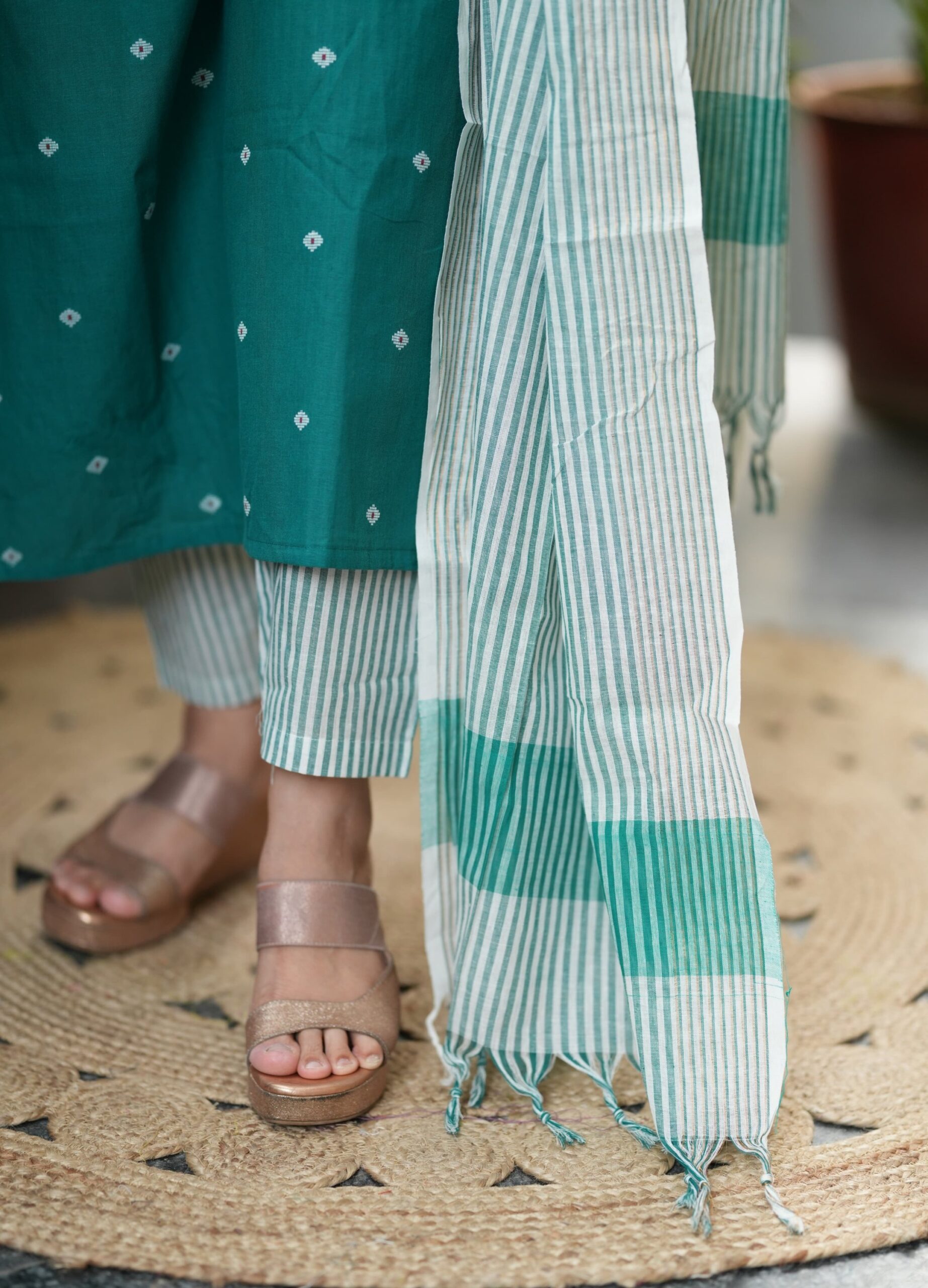 Paired with handloom cotton pant and handloom south cotton duppata perfect for casual and occasional out.