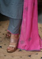 “Seize the day” with a classy self weave embroidery Grey and pink suit.