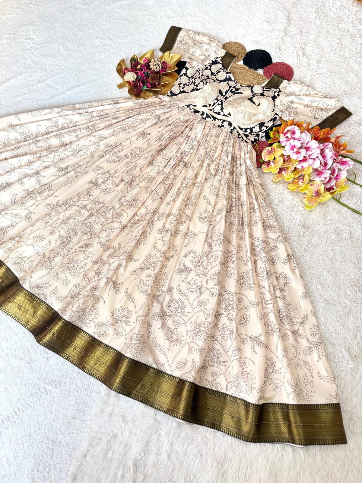 *Launching Top Trending Beautiful Soft Dola Silk Kalamkari Gown A touch of glamour and elegance to your look For Festive Season.*