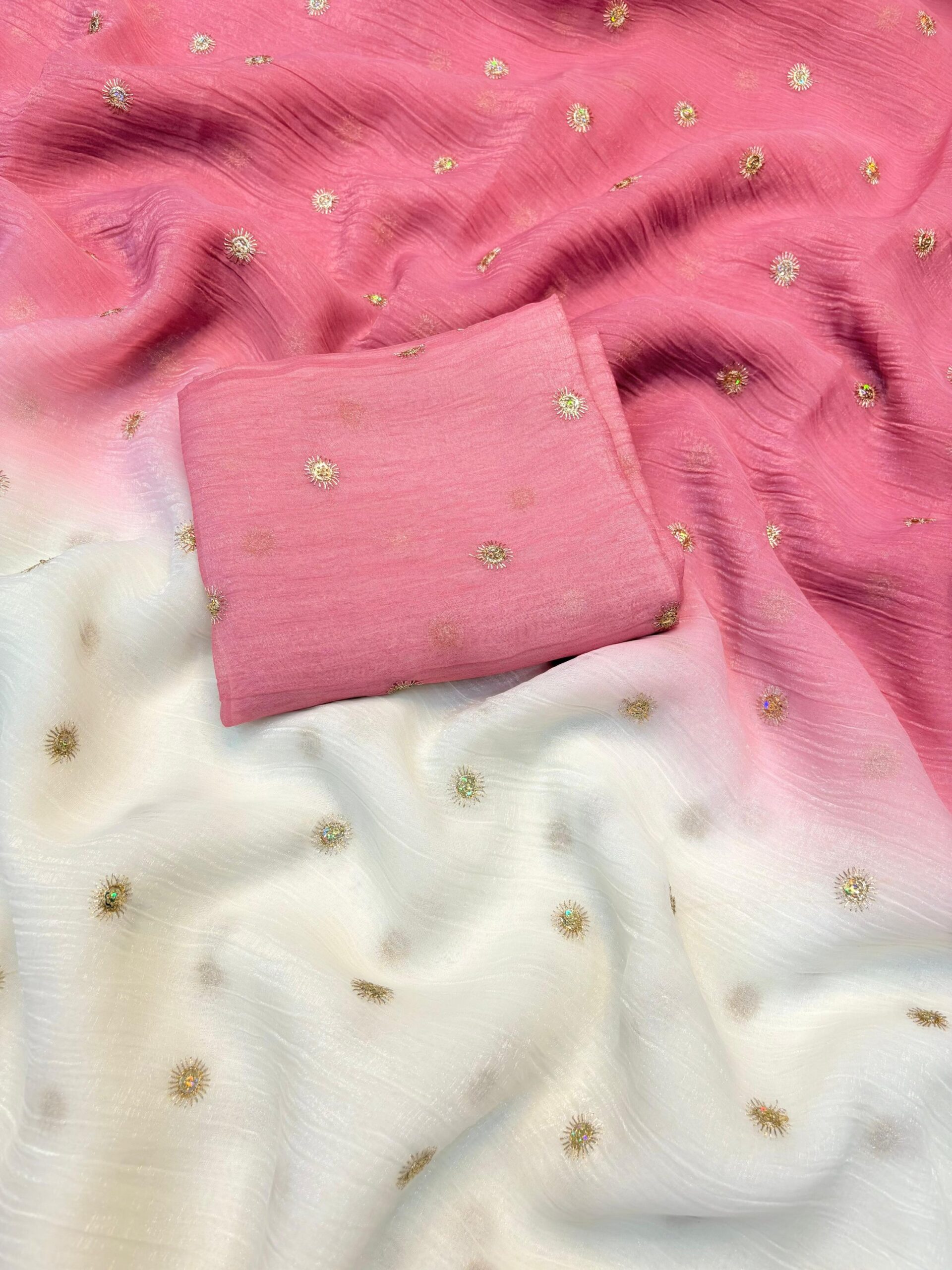 Party wear shaded fabric with trending color and small beautiful sequence butti all over on saree