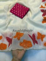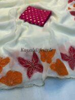 Soft crunchy silk saree with embroidery therd matching work with contrast embroidery work blouse