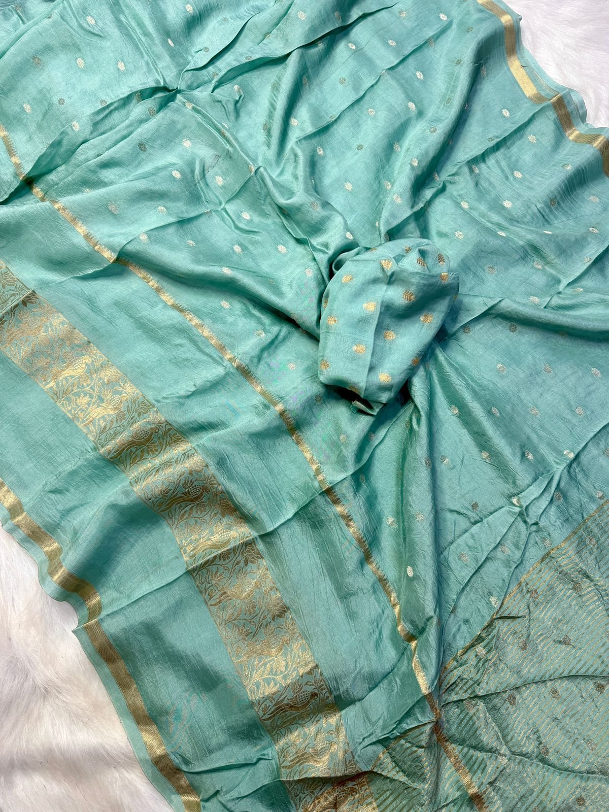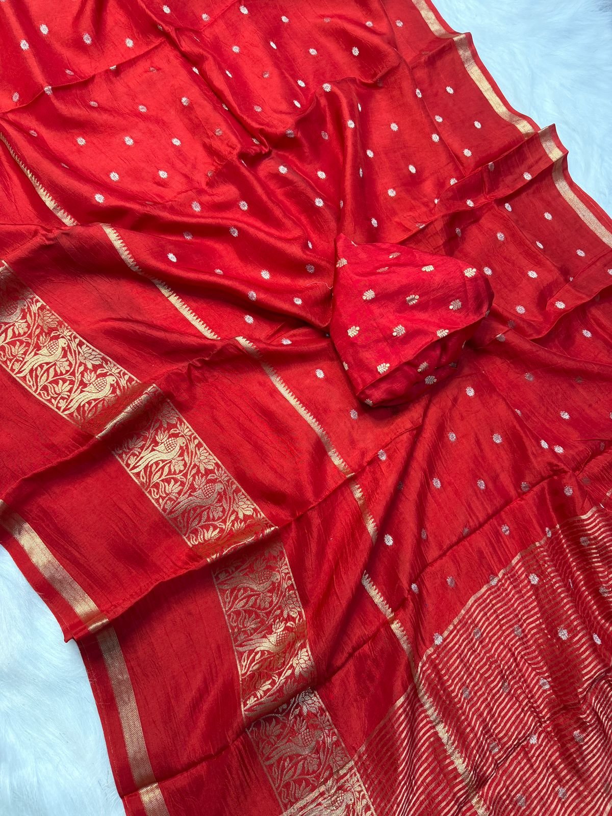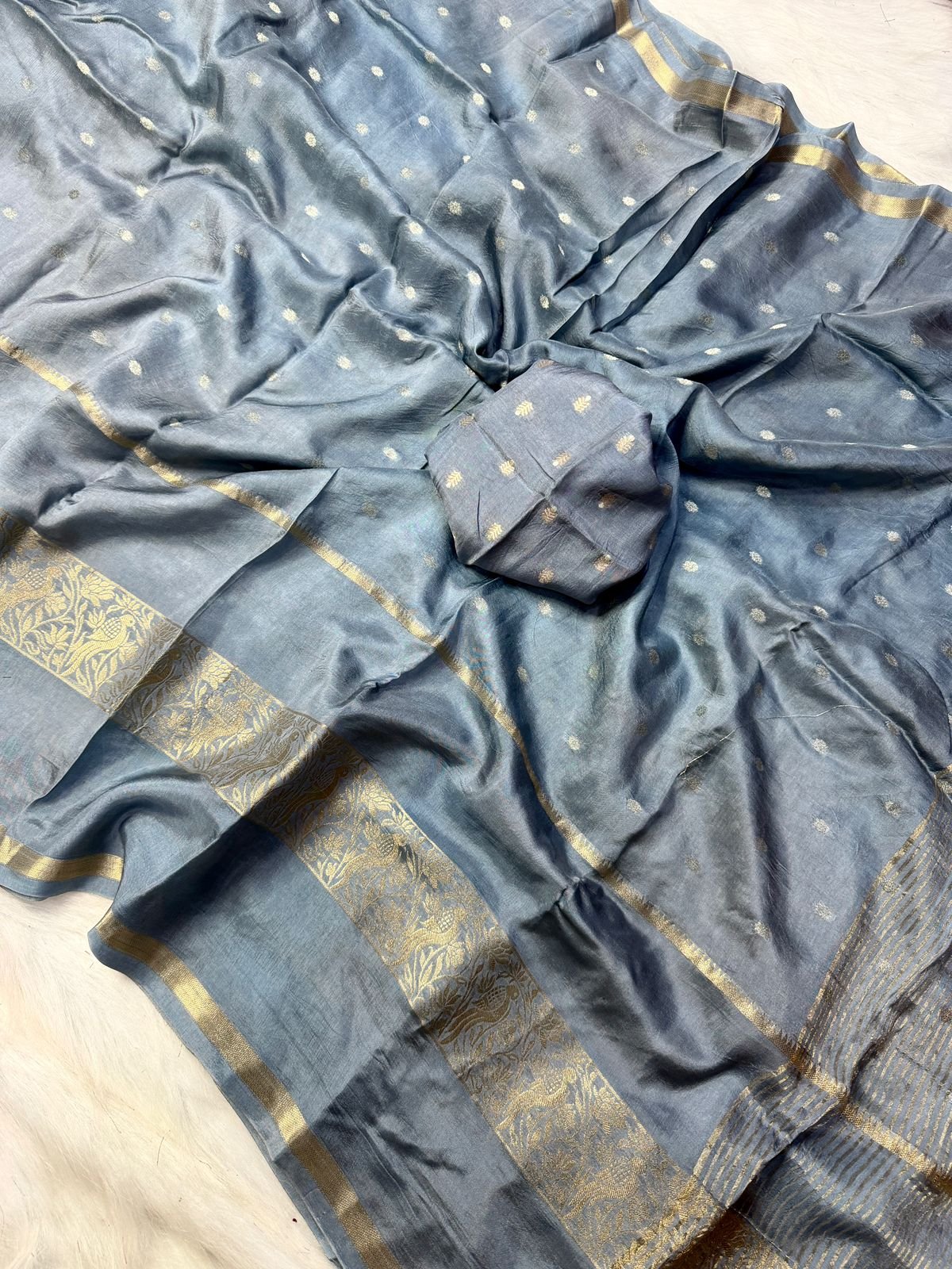 Pure Russian khadi Viscos saree with beautiful hiran 🦌(deer) figure 2 type zari jaqcard patta with Russian butti blouse