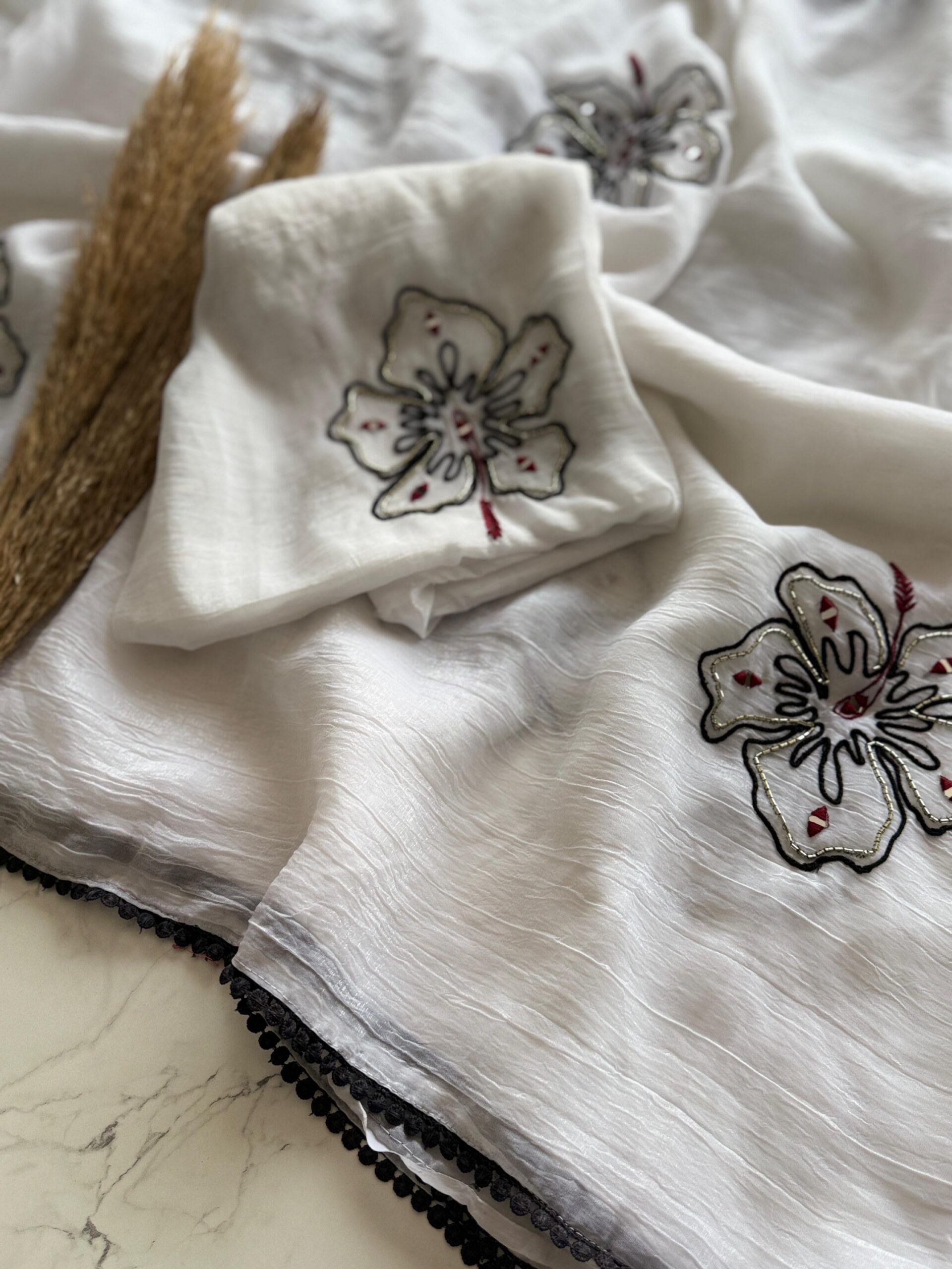 Premium Crunchy Silk With Knot and Mirror handwork , Gpo Lace Border