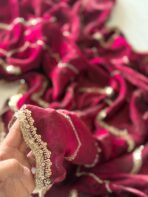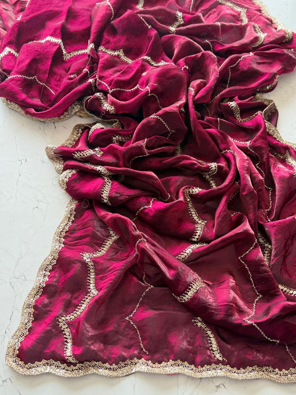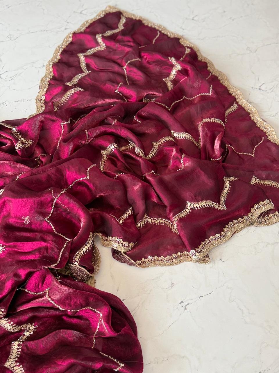 Premium Fendi silk with Beads Handwork All over Saree and Heavy Sequnce Scallop Border
