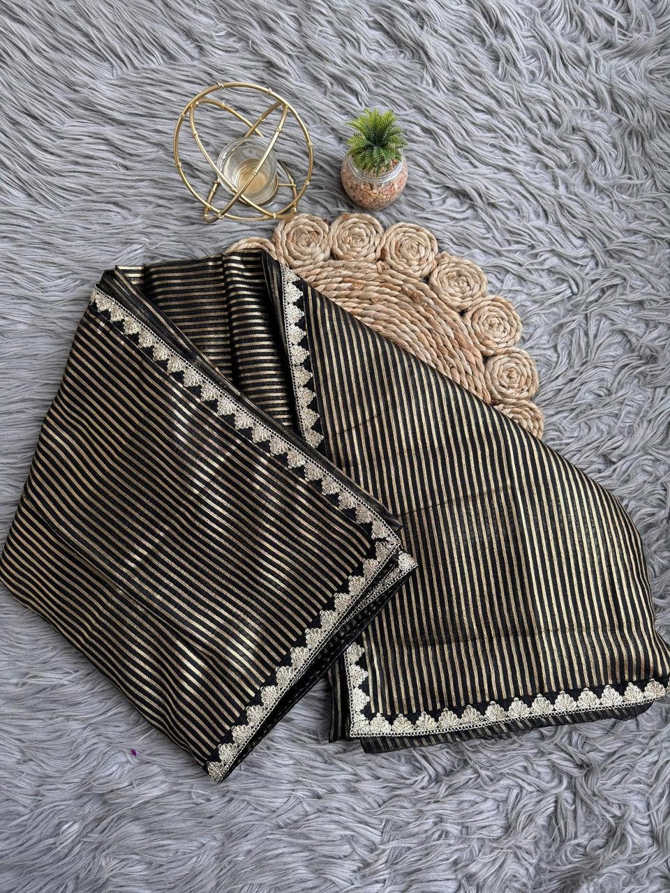 Pure Soft Organza Pure weave Gold Zari saree With Sequence Thread Lace Border