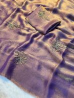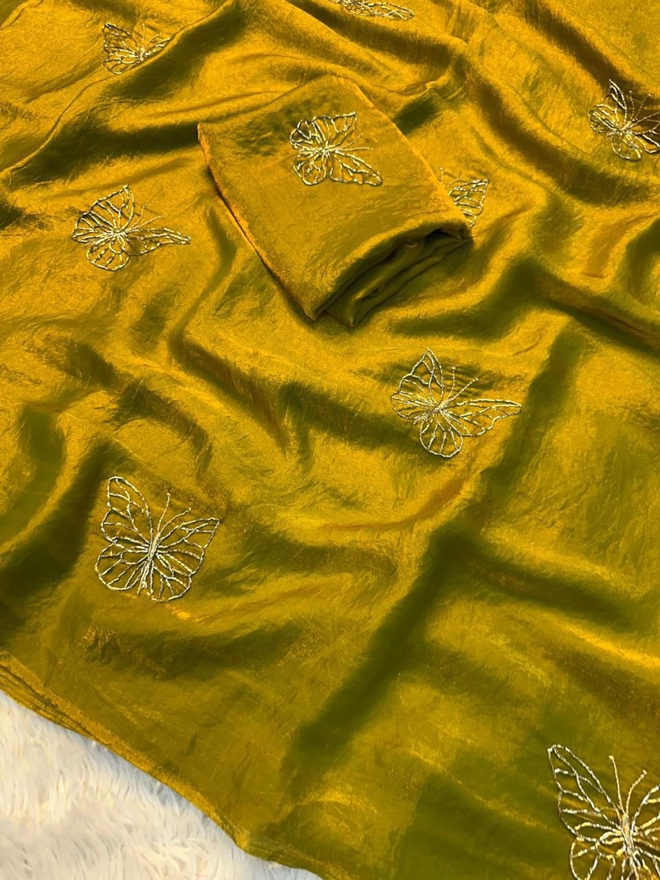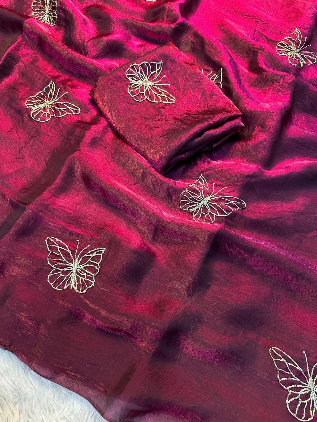 Beautiful butterfly Two tone heavy space silk fabric with beautiful leaf with hand work beads with Monochromatic running blouse