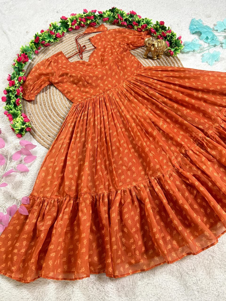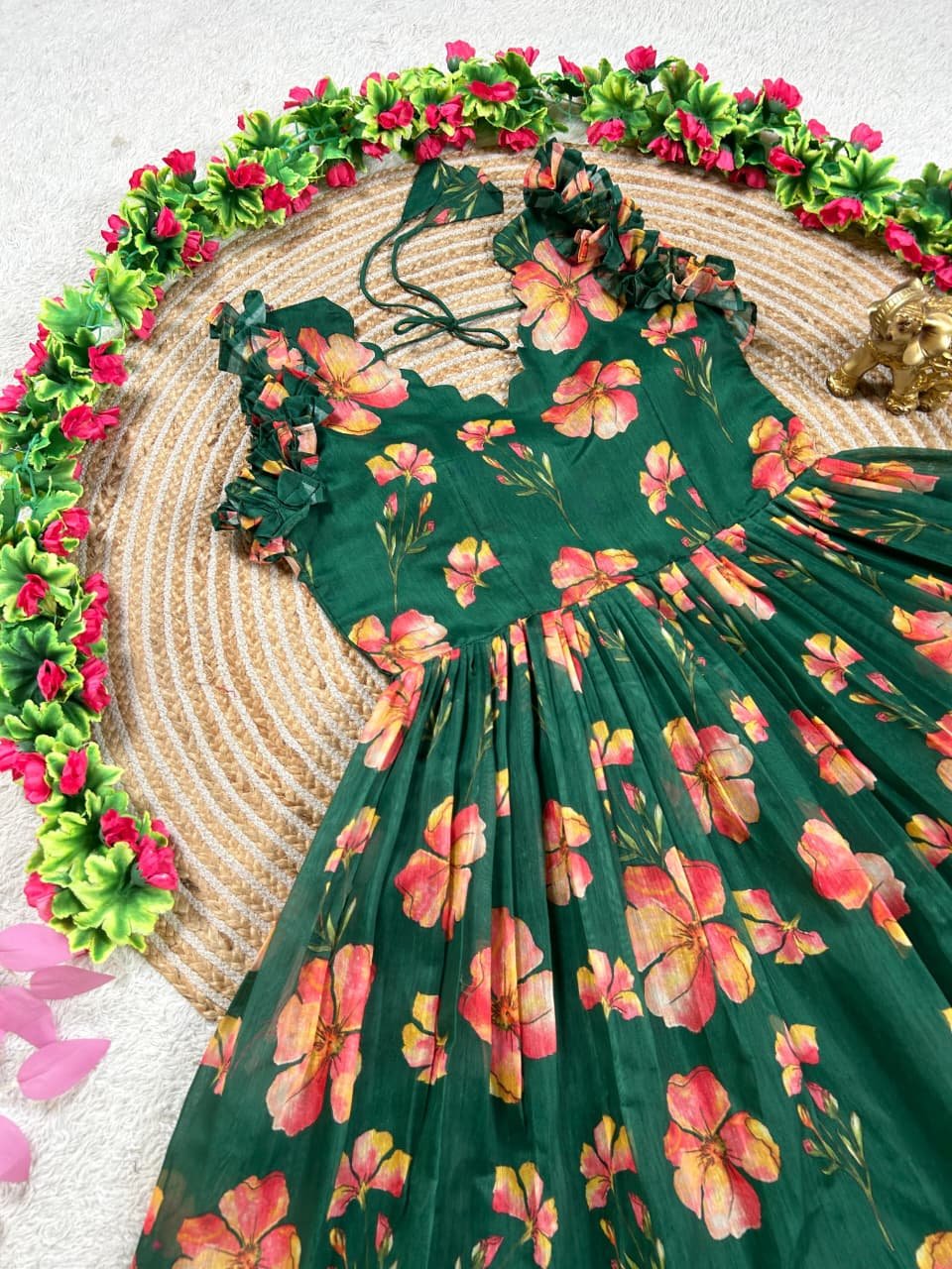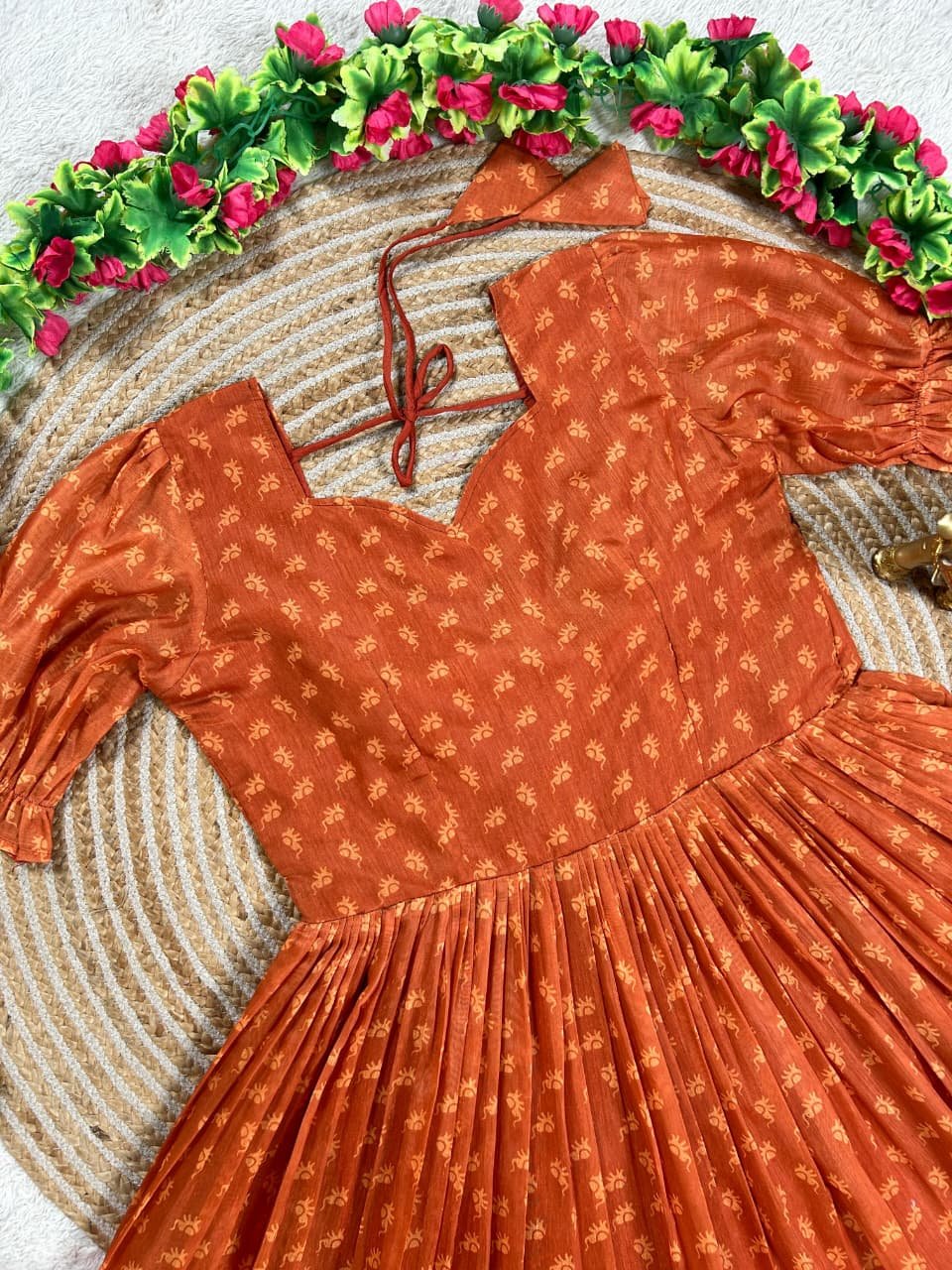 Beautifully Pure Chanderi Stitched Floral Print Gown & Beautiful Sleeves*