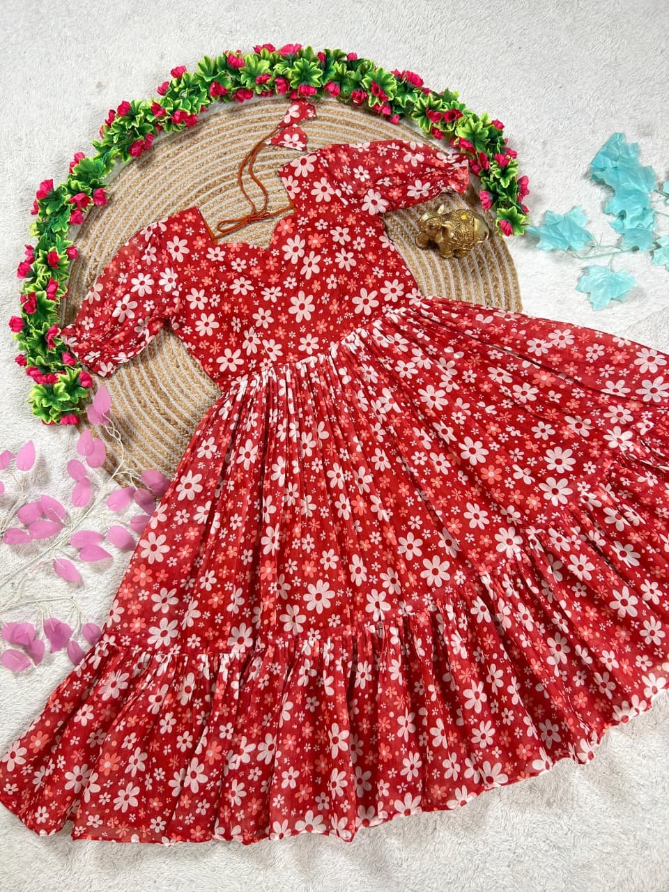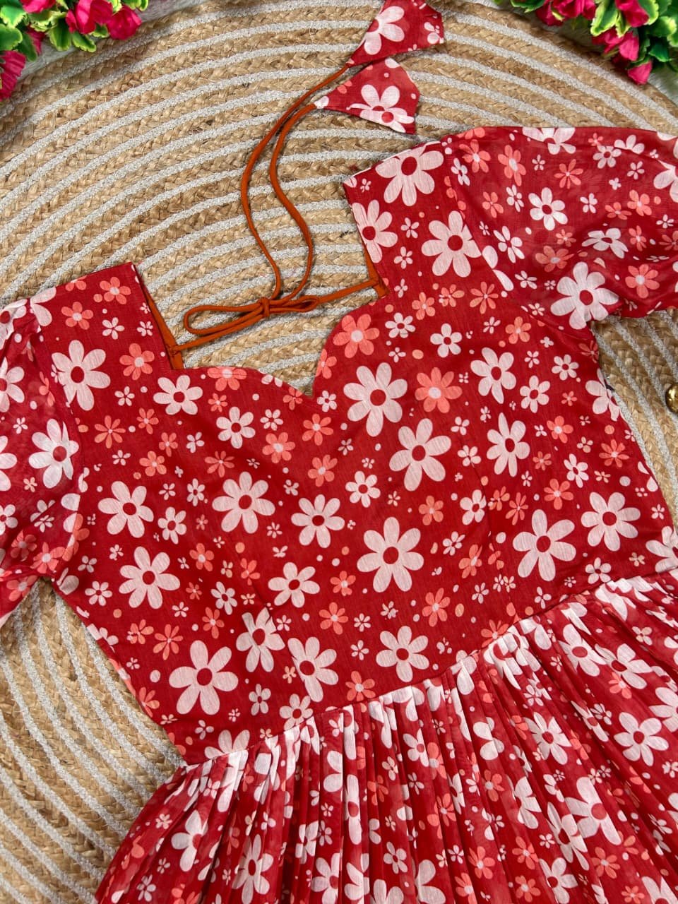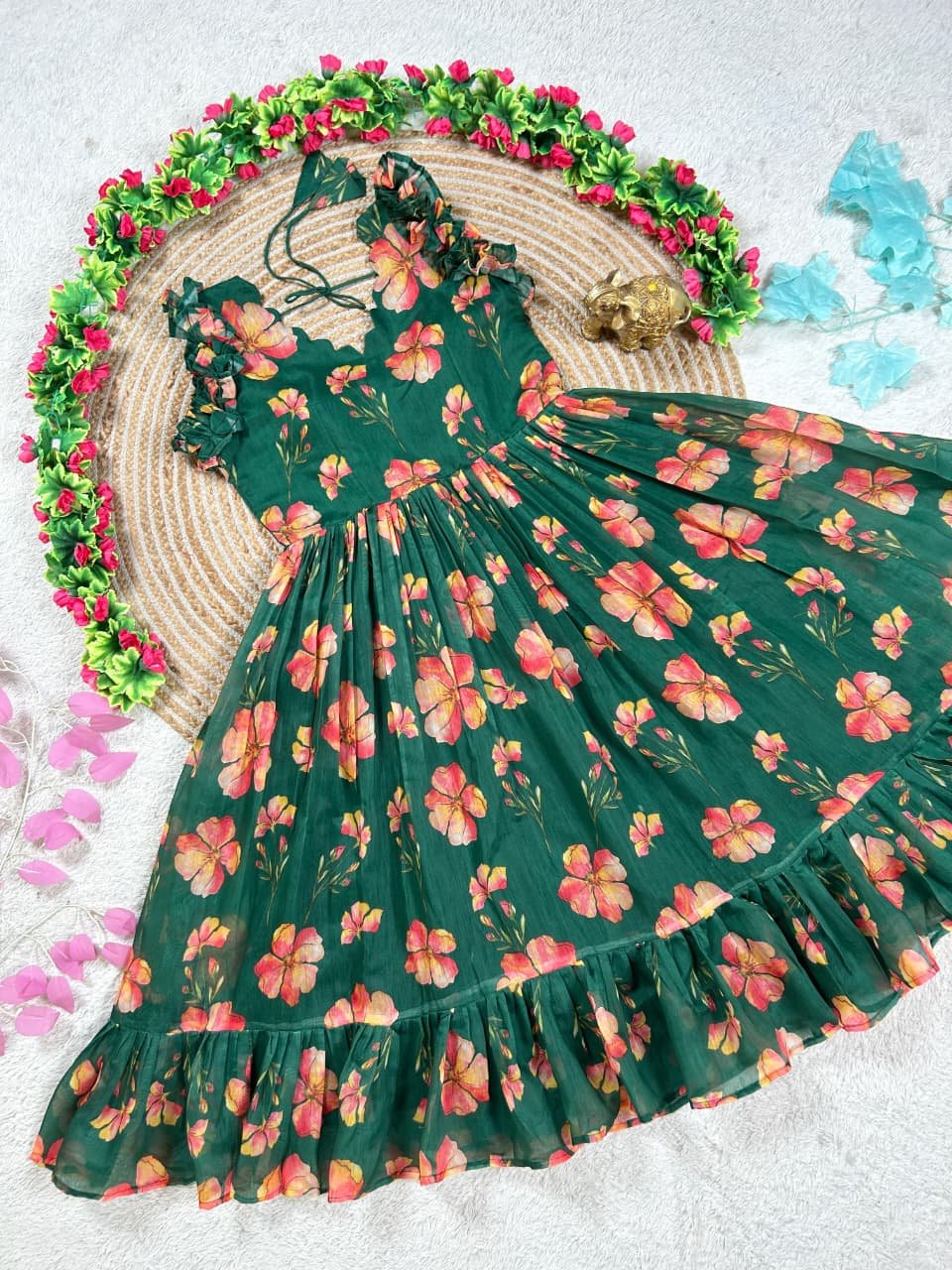 Beautifully Pure Chanderi Stitched Floral Print Gown & Beautiful Sleeves*