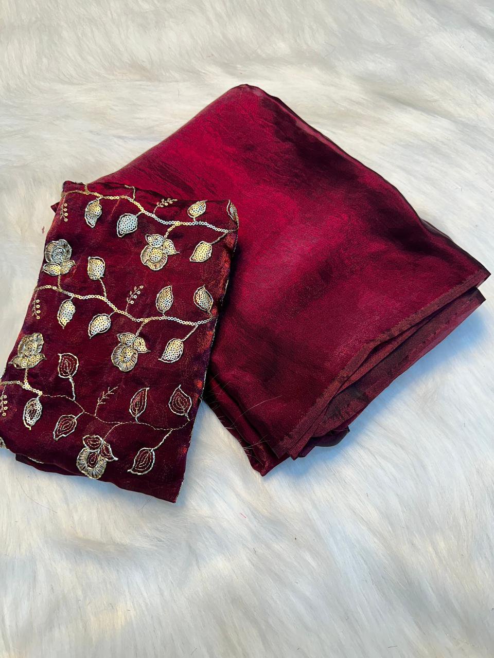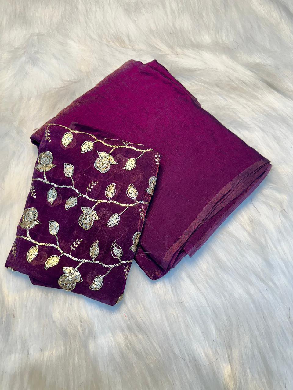 Saree with 0.90 full Embroidered blouse