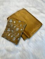 Two tone Crush silk fabric saree with same heavy designs beads blouse worked