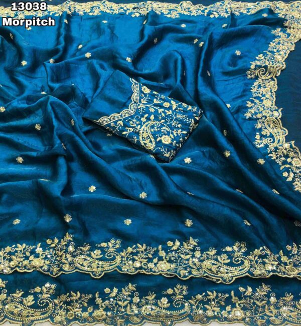 Fabric – Soft space silk coading embroidery & sequence work with scalloped cutwork border
