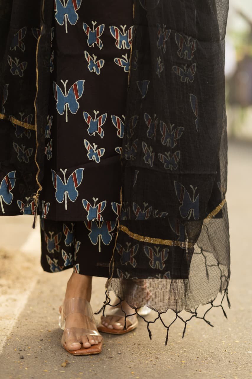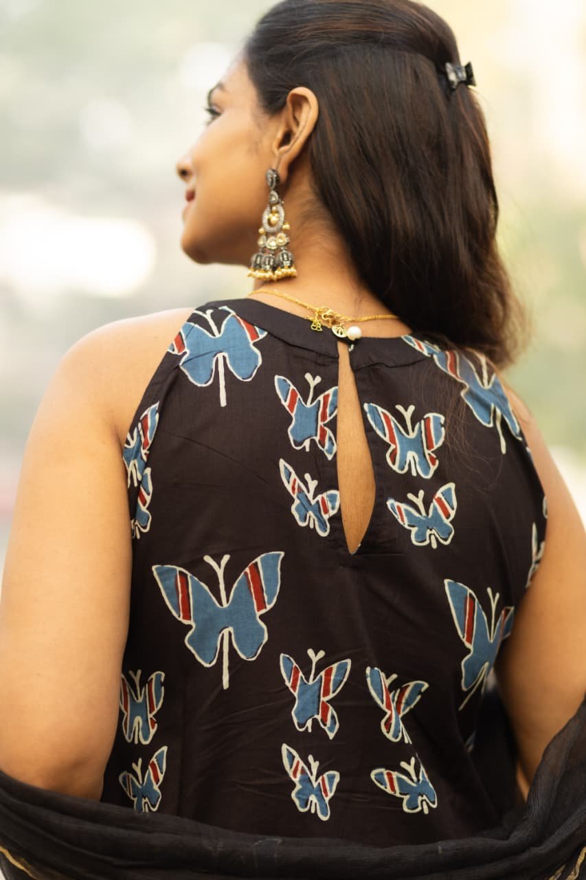 Butterfly printed design for a eye-catchy and sophisticated look.