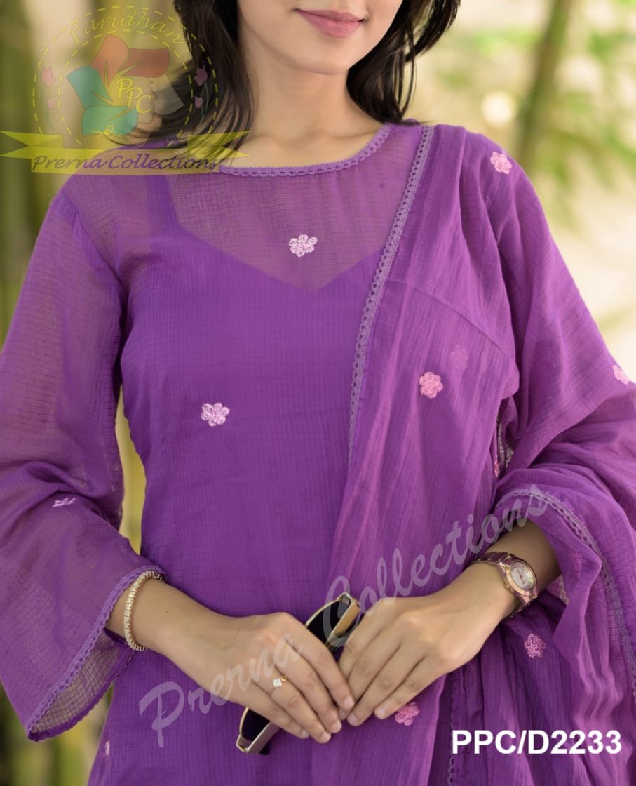 LOOK GRACEFUL IN OUR EMBROIDERED KOTA SET IN PURPLE COLOUR TO UPDATE UR WARDROBE