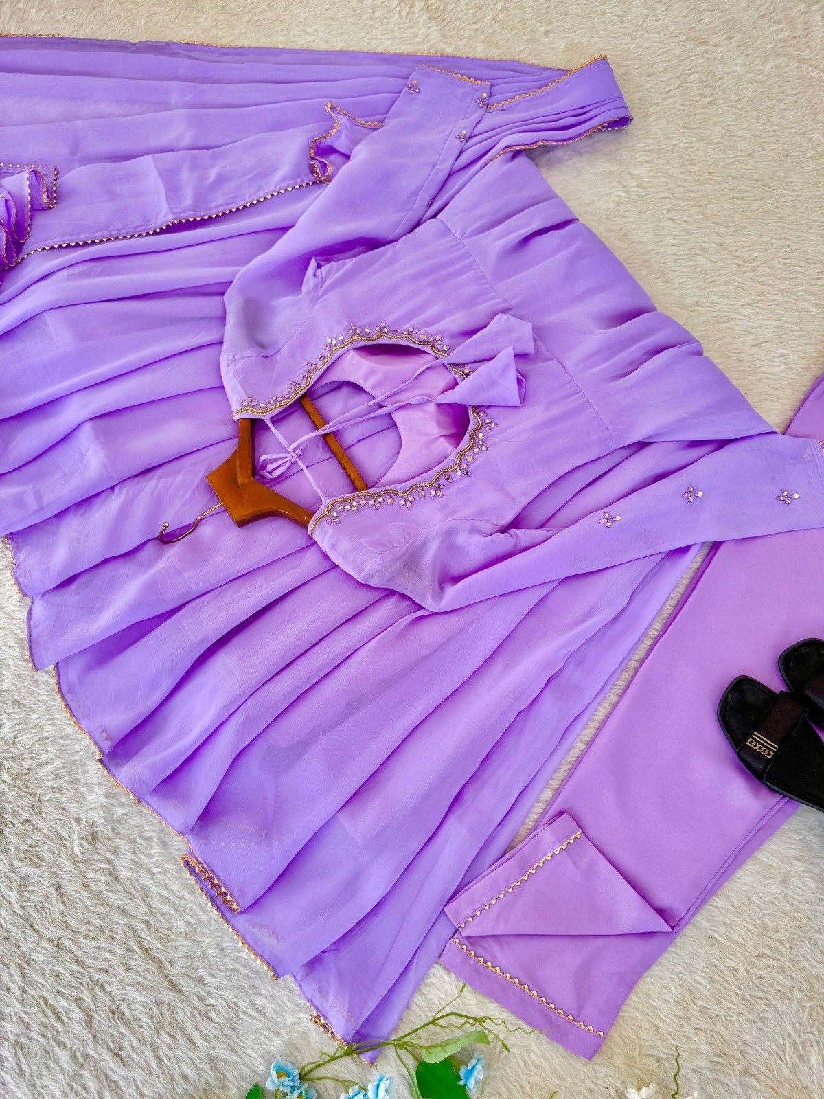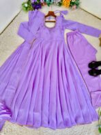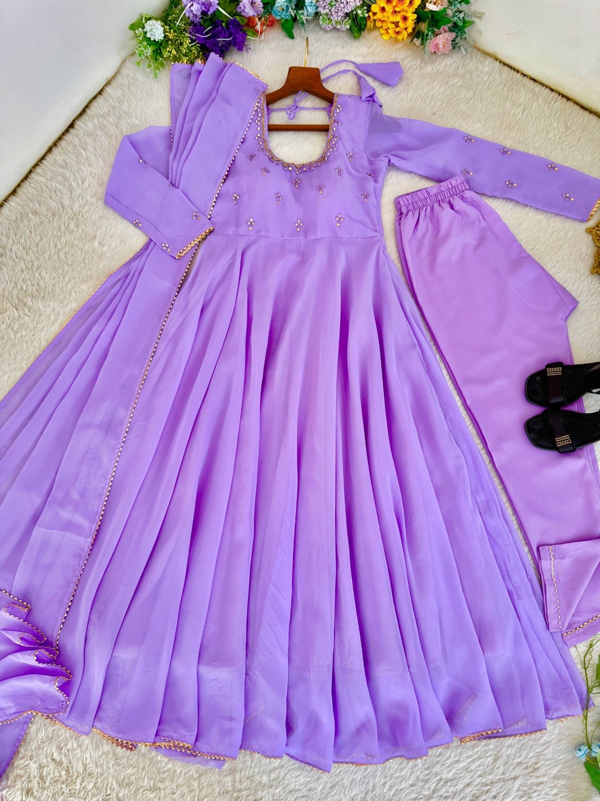 Presenting a New Party Wear Look Georgette Gown With Pant , DupattaGown – Georgette Heavy Quality Fabric With Hand Mirror 🪞 Embroidery, Full Sleeve Embroidery