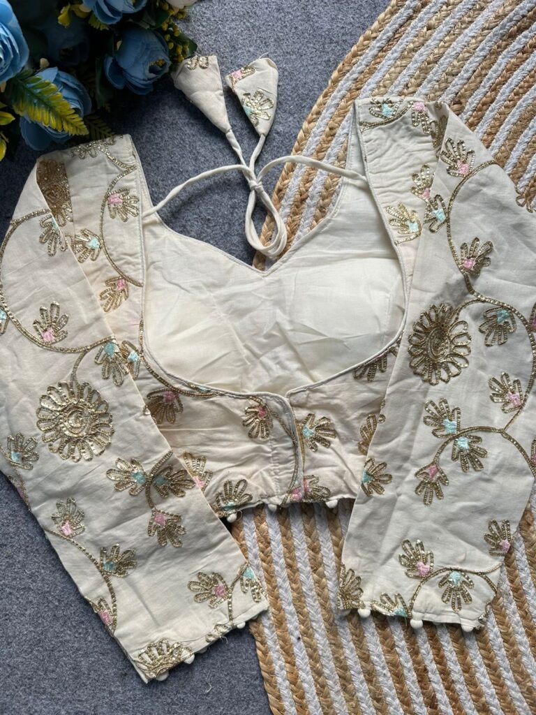 contrast pallu nd blouse attached lace